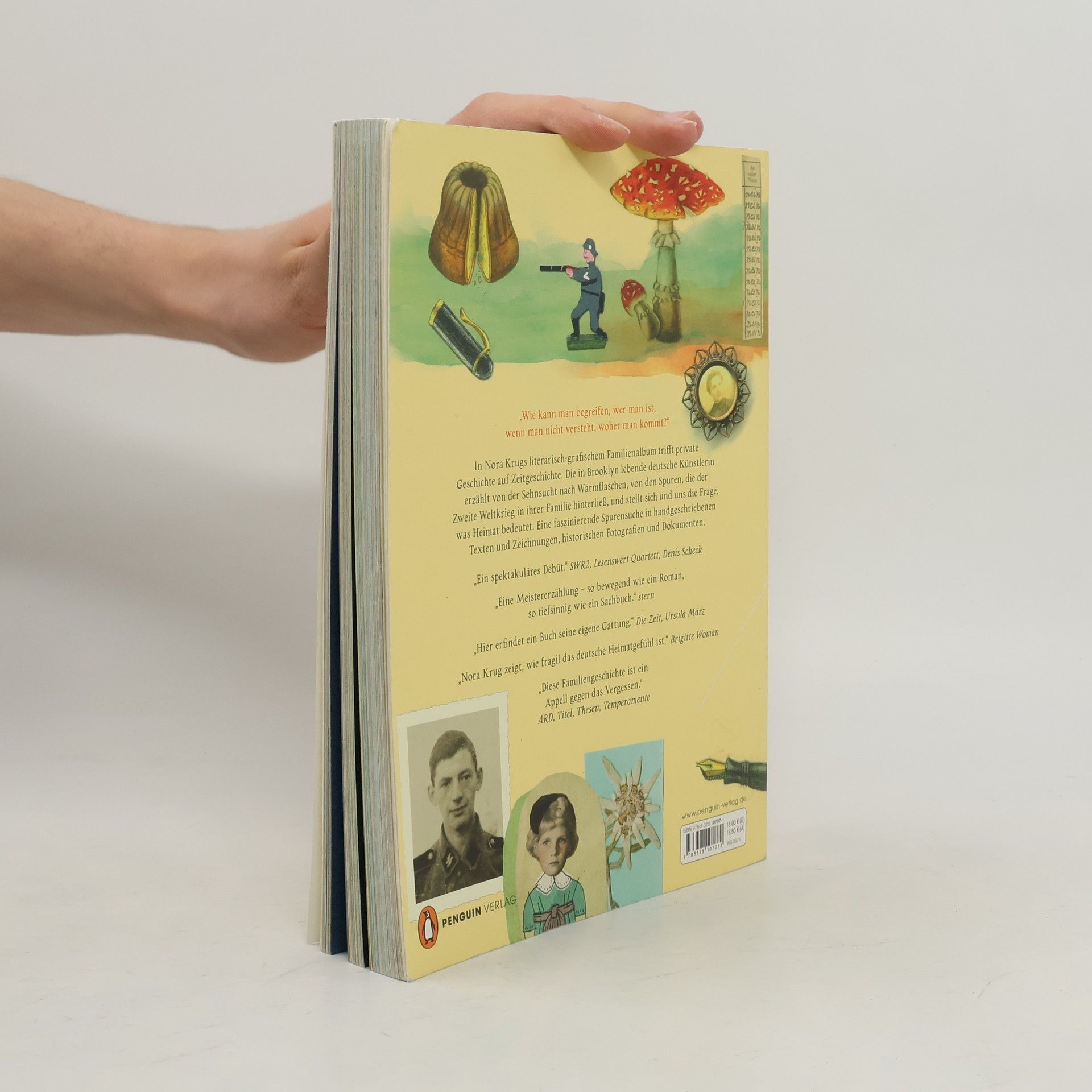 Erneut nominiert für den Deutschen Jugendbuchpreis – Evangelischer Buchpreis – Förderpreis der Stadt Aalen – SWR-Bestenliste – Tagesspiegel-Bestenliste Comics – Silbermedaille der »Society of Illustrators« – Goldmedaille des Art Director Clubs USA – NBCC Award – Nominiert für den Grand-Prix des Comicfestivals Angouleme Nora Krug lebt seit fast zwanzig Jahren in New York, ist verheiratet mit einem amerikanischen Juden und fühlt sich doch deutscher als je zuvor. Weshalb eigentlich? Warum sträubt sie sich gegen dieses Gefühl? Und was bedeutet eigentlich Heimat? Die 1977 in Karlsruhe geborene Autorin und Illustratorin Krug begibt sich auf die Suche nach der Vergangenheit ihrer Familie. Aus Fotografien, Archiv- und Flohmarktfunden der Kriegsjahre und aus Krugs eigenen Zeichnungen und Collagen entsteht ein einzigartiges Erinnerungsbuch, in dem Familiengeschichte auf Zeitgeschichte trifft. Ein handgeschriebenes Graphic Memoir, lebendig, wahr und poetisch erzählt. Vielfach ausgezeichnet und von der Presse hochgelobt.