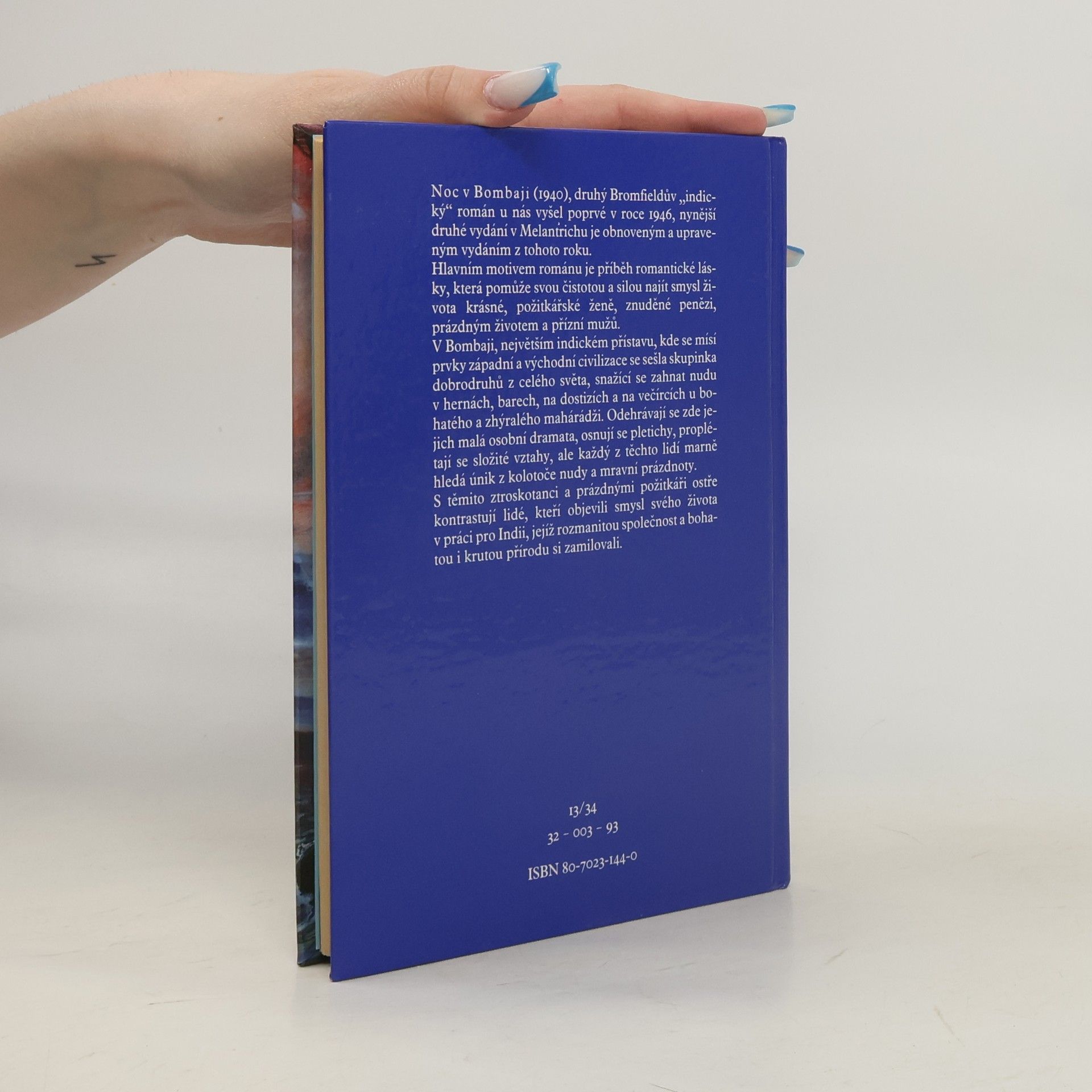 Noc v Bombaji (1940), druhý Bromfieldův "indický" román u nás vyšel poprvé v roce 1946, nynější druhé vydání v Melantrichu je obnoveným a upraveným vydáním z tohoto roku. Hlavním motivem románu je příběh romantické lásky, která pomůže svou čistotou a silou najít smysl života krásné, požitkářské ženě, znuděné penězi, prázdným životem a přízní mužů. V Bombaji, největším indickém přístavu, kde se mísí prvky západní a východní civilizace se sešla skupinka dobrodruhů z celého světa, snažící se zahnat nudu v hranách, barech, na dostizích a na večírcích u bohatého a zhýralého mahárádži. Odehrávají se zde jejich malá osobní dramata, osnují se pletichy, proplétají se složité vztahy, ale každý z těchto lidí hledá únik z kolotoče nudy a mravní prázdnoty. S těmito ztroskotanci a prázdnými požitkáři ostře kontrastují lidé, kteří objevili smysl svého života v práci pro Indii, jejíž rozmanitou společnost a bohatou i krutou přírodu si zamilovali.