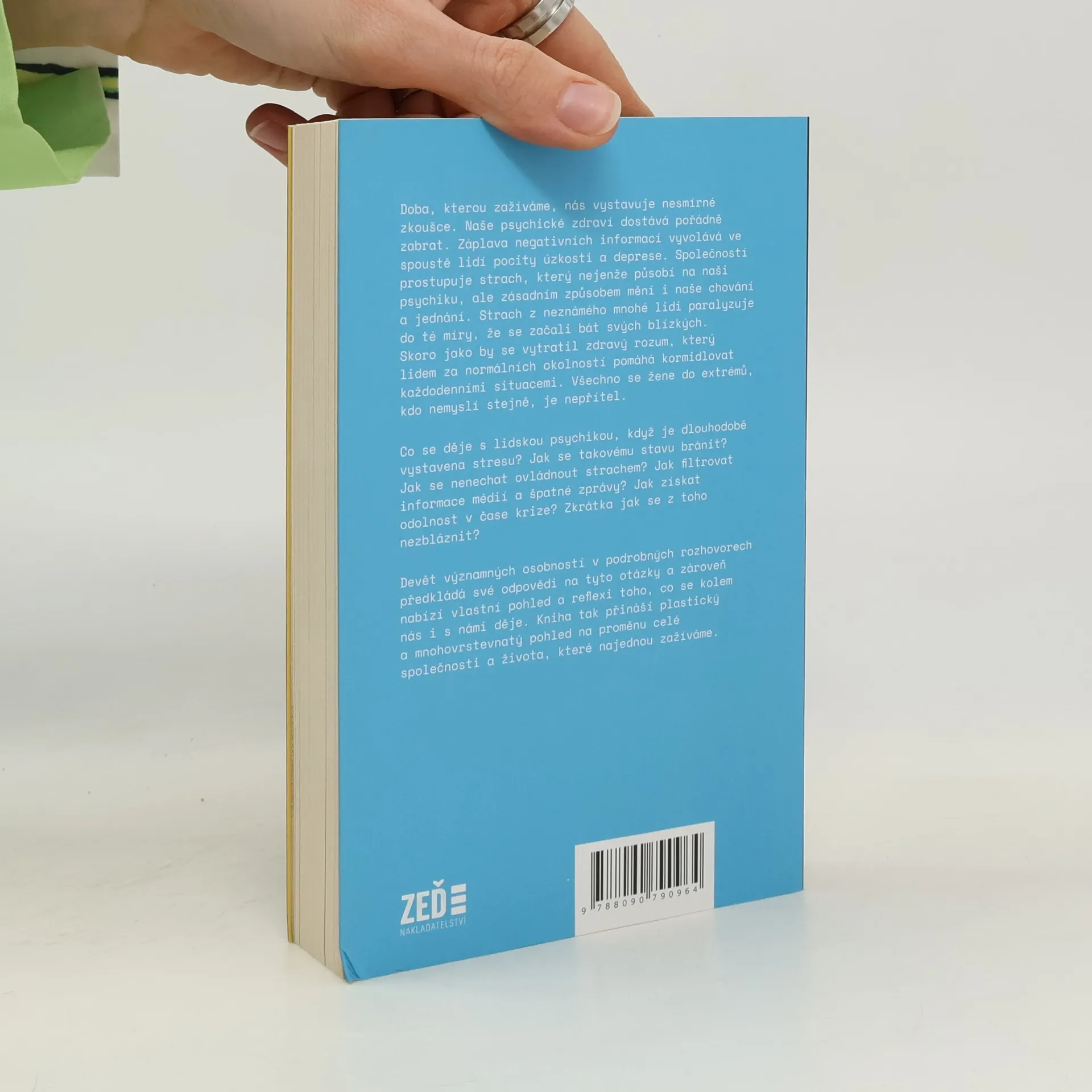 Doba, kterou zažíváme, nás vystavuje nesmírné zkoušce. Naše psychické zdraví dostává pořádně zabrat. Záplava negativních informací vyvolává ve spoustě lidí pocity úzkosti a deprese. Společností prostupuje strach, který nejenže působí na naše psychiku, ale zásadním způsobem mění i naše chování a jednání. Strach z neznámého mnohé lidi paralyzuje do té míry, že se začali bát svých blízkých. Skoro jako by se vytratil zdravý rozum, který lidem za normálních okolností pomáhá kormidlovat každodenními situacemi. Všechno se žene do extrémů, kdo nemyslí stejně, je nepřítel. Co se děje s lidskou psychikou, když je dlouhodobě vystavena stresu? Jak se takovému stavu bránit? Jak se nenechat ovládnout strachem? Jak filtrovat informace médií a špatné zprávy? Jak získat odolnost v čase krize? Zkrátka, jak se z toho nezbláznit? Devět významných osobností v podrobných rozhovorech předkládá své odpovědi na tyto otázky a zároveň nabízí svůj pohled a reflexi toho, co se kolem nás i s námi děje. Kniha tak přináší plastický a mnohovrstevnatý pohled na proměnu celé společnosti a života, které najednou zažíváme. V této knize se sešla unikátní společnost: Radkin Honzák, Václav Cílek, Zbigniew Czendlik, Jan Hnízdil, Margit Slimáková, Karel Schwarzenberg, Karel „Kovy“ Kovář, Martina Viktorie Kopecká, Barbora Janečková