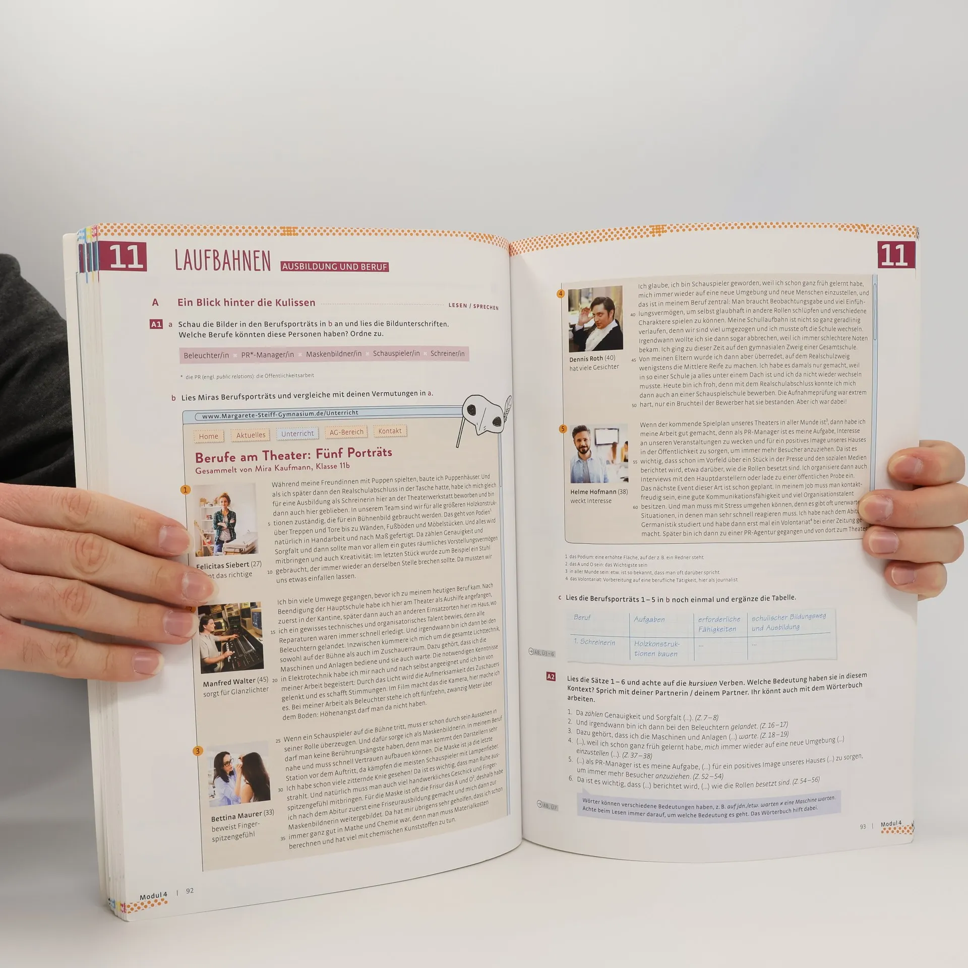 Zielniveau B2 • 4 Module à 3 Lektionen • in jedem Modul werden die Schüler und Schülerinnen von einem jugendlichen Protagonisten begleitet, der die Lektionen inhaltlich lose verknüpft • Einstiegsseite zu jedem Modul, auf der der Protagonist und die Themen der Lektionen vorgestellt werden • am Ende jedes Moduls: drei Seiten Literatur, Landeskunde und Projekt • transparente Verknüpfung mit dem Arbeitsbuch • Anhang: Grammatikübersicht, Verblisten und Redemittelübersicht