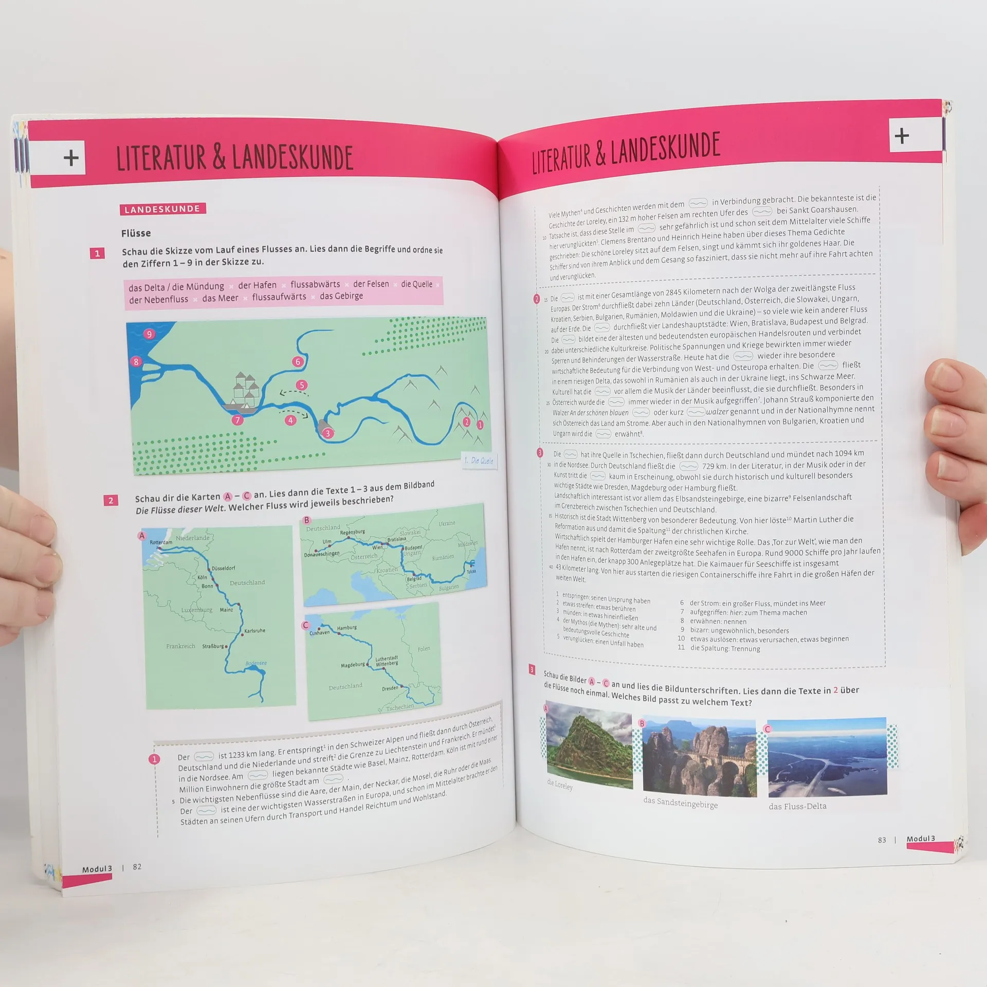 Zielniveau B2 • 4 Module à 3 Lektionen • in jedem Modul werden die Schüler und Schülerinnen von einem jugendlichen Protagonisten begleitet, der die Lektionen inhaltlich lose verknüpft • Einstiegsseite zu jedem Modul, auf der der Protagonist und die Themen der Lektionen vorgestellt werden • am Ende jedes Moduls: drei Seiten Literatur, Landeskunde und Projekt • transparente Verknüpfung mit dem Arbeitsbuch • Anhang: Grammatikübersicht, Verblisten und Redemittelübersicht