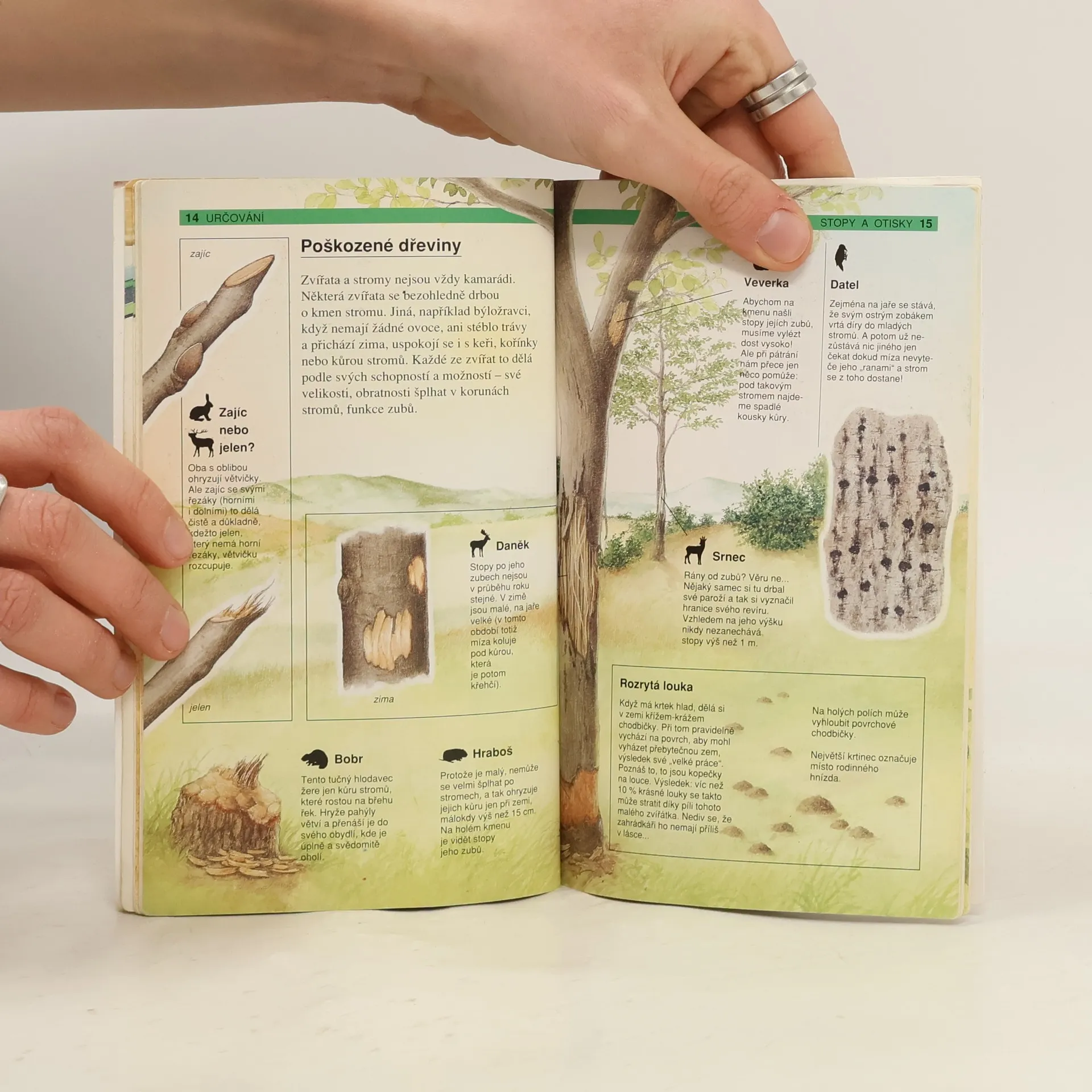 určení ptačího pírka, rozeznání stop lišky, divokého prasete nebo jezevce...