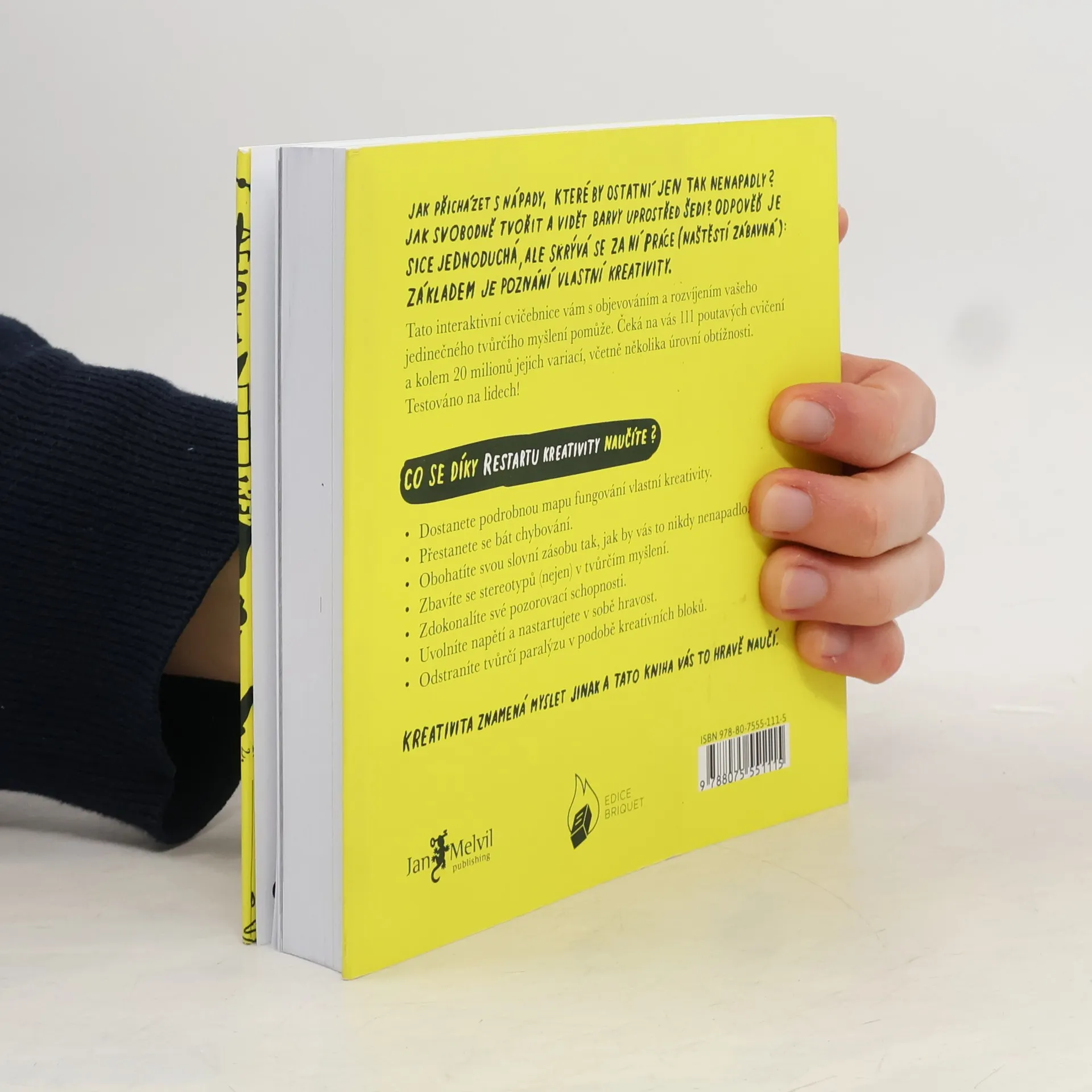 Cvičebnice nápaditosti, ve které nemůžete udělat chybu. Jak být nápaditější? Odpověď je sice jednoduchá, ale skrývá se za ní poměrně mnoho dřiny – základem je totiž poznání vlastní kreativity. Ale jak toho docílit? Pochopitelně s touto knihou – cvičebnicí, která vám díky své interaktivnosti nabídne unikátní způsob, jak odhalit podoby svého jedinečného tvůrčího myšlení. Čeká na vás 111 osvědčených tvůrčích cvičení a cca 20 miliónů jejich variací! Jakmile se do cvičebnice ponoříte a začnete plnit úkoly, pravděpodobně narazíte na své limity a bariéry; a Restart kreativity vás naučí, že i ty jsou důvodem k radosti. Protože i díky nim přijdete na postupy, které vám fungují a ve kterých vyčníváte. Zkrátka, čím více ji budete používat, tím více se o sobě dozvíte. Rozvinete své pozorovací dovednosti, bohatost slovní zásoby či schopnost uplatnit různé tvůrčí postupy. Kniha je určená všem lidem toužícím po úniku ze stereotypu, bez ohledu na věk či vzdělání. Pochopitelně s touto knihou – cvičebnicí, která vám díky své interaktivnosti nabídne unikátní způsob, jak odhalit podoby svého jedinečného tvůrčího myšlení. Čeká na vás 111 osvědčených tvůrčích cvičení a cca 20 miliónů jejich variací! Kniha je určená všem lidem toužícím po úniku ze stereotypu, bez ohledu na věk či vzdělání.