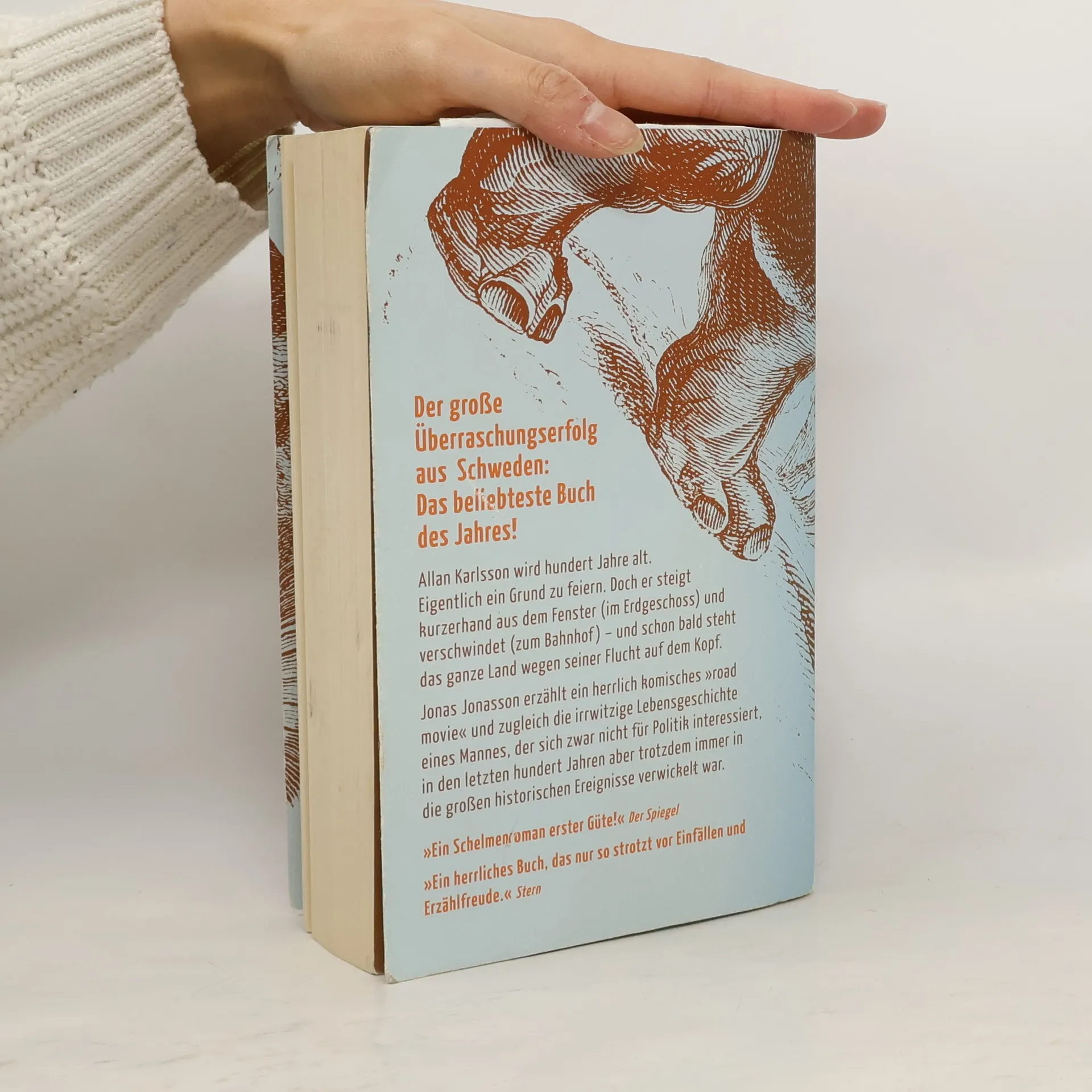 Allan Karlsson hat Geburtstag. Er wird 100 Jahre alt. Eigentlich ein Grund zu feiern. Doch während sich der Bürgermeister und die lokale Presse auf das große Spektakel vorbereiten, hat der Hundertjährige ganz andere Pläne: er verschwindet einfach – und schon bald steht ganz Schweden wegen seiner Flucht auf dem Kopf. Doch mit solchen Dingen hat Allan seine Erfahrung, er hat schließlich in jungen Jahren die ganze Welt durcheinander gebracht.Jonas Jonasson erzählt in seinem Bestseller von einer urkomischen Flucht und zugleich die irrwitzige Lebensgeschichte eines eigensinnigen Mannes, der sich zwar nicht für Politik interessiert, aber trotzdem irgendwie immer in die großen historischen Ereignisse des 20. Jahrhunderts verwickelt war.