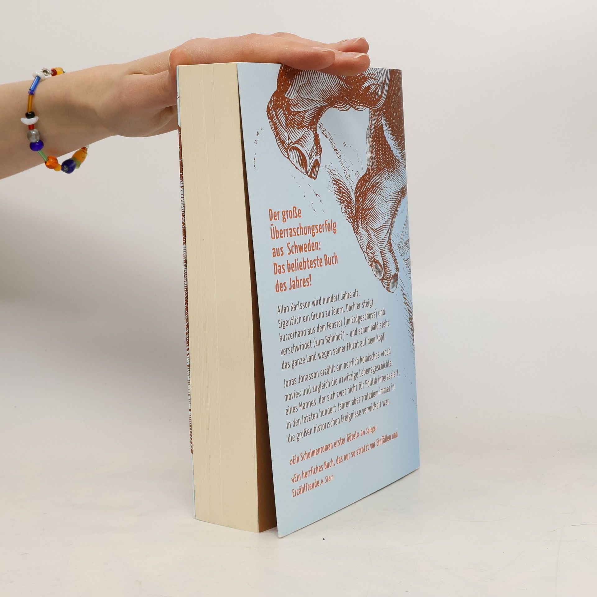 Allan Karlsson hat Geburtstag. Er wird 100 Jahre alt. Eigentlich ein Grund zu feiern. Doch während sich der Bürgermeister und die lokale Presse auf das große Spektakel vorbereiten, hat der Hundertjährige ganz andere Pläne: er verschwindet einfach – und schon bald steht ganz Schweden wegen seiner Flucht auf dem Kopf. Doch mit solchen Dingen hat Allan seine Erfahrung, er hat schließlich in jungen Jahren die ganze Welt durcheinander gebracht.Jonas Jonasson erzählt in seinem Bestseller von einer urkomischen Flucht und zugleich die irrwitzige Lebensgeschichte eines eigensinnigen Mannes, der sich zwar nicht für Politik interessiert, aber trotzdem irgendwie immer in die großen historischen Ereignisse des 20. Jahrhunderts verwickelt war.