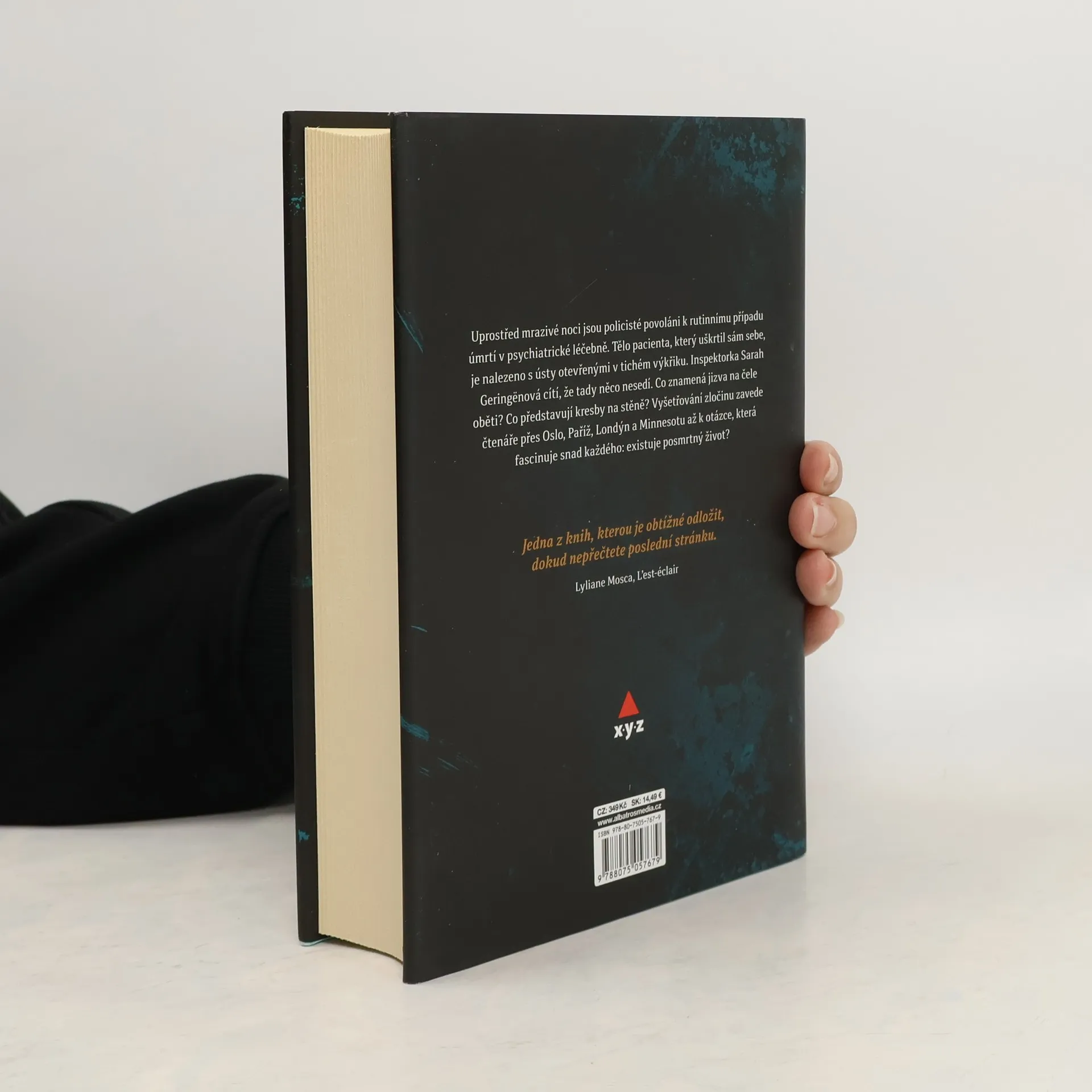 Výjimečný thriller inspirovaný skutečnými událostmi. Uprostřed mrazivé noci jsou policisté povoláni k rutinnímu případu úmrtí v psychiatrické léčebně. Tělo pacienta, který uškrtil sám sebe, je nalezeno s ústy otevřenými v tichém výkřiku. Inspektorka Sarah Geringënová cítí, že tady něco nesedí. Co znamená jizva na čele oběti? Co představují kresby na stěně? Vyšetřování zločinu zavede čtenáře přes Londýn, Oslo a Minnesotu až k otázce, která fascinuje snad každého: existuje posmrtný život?