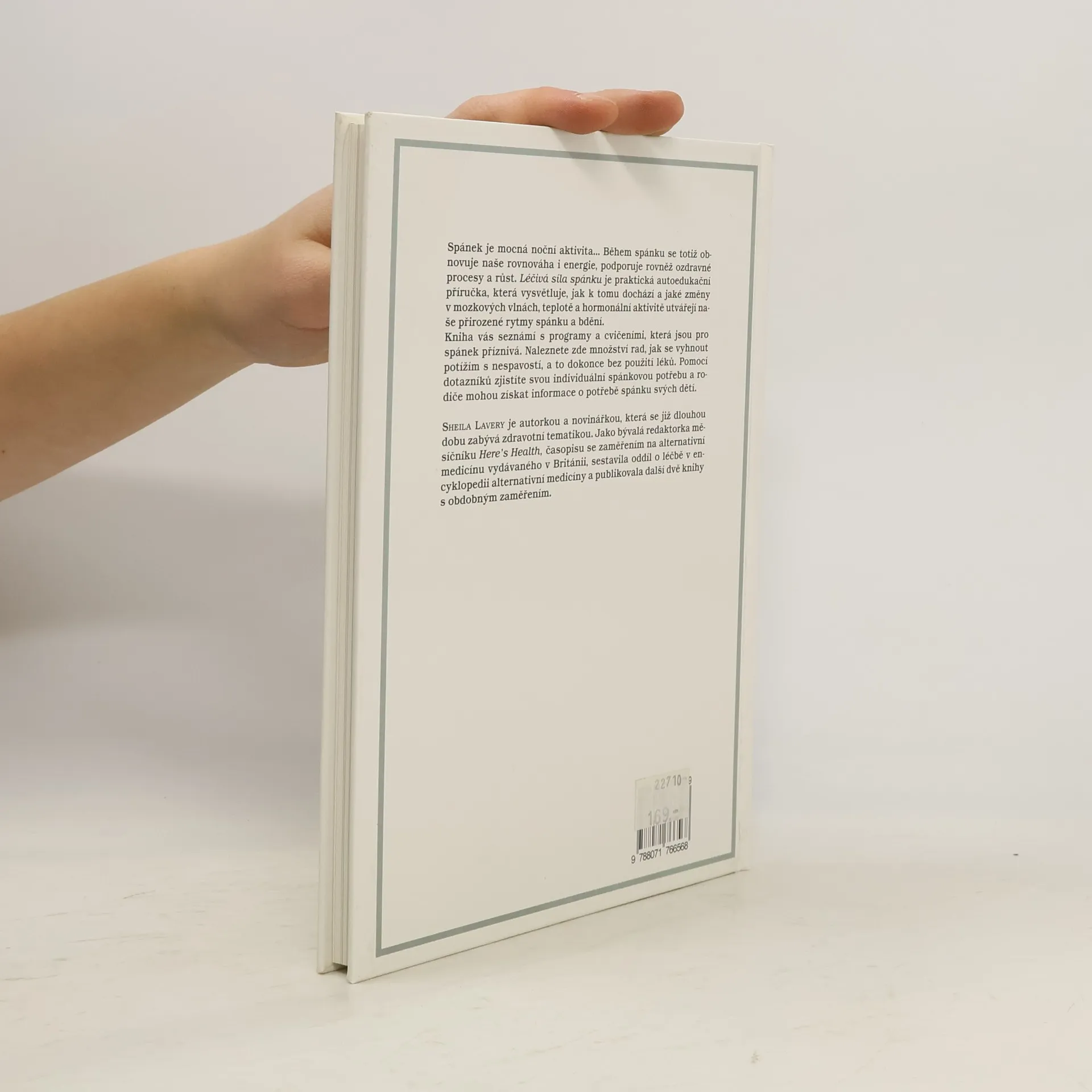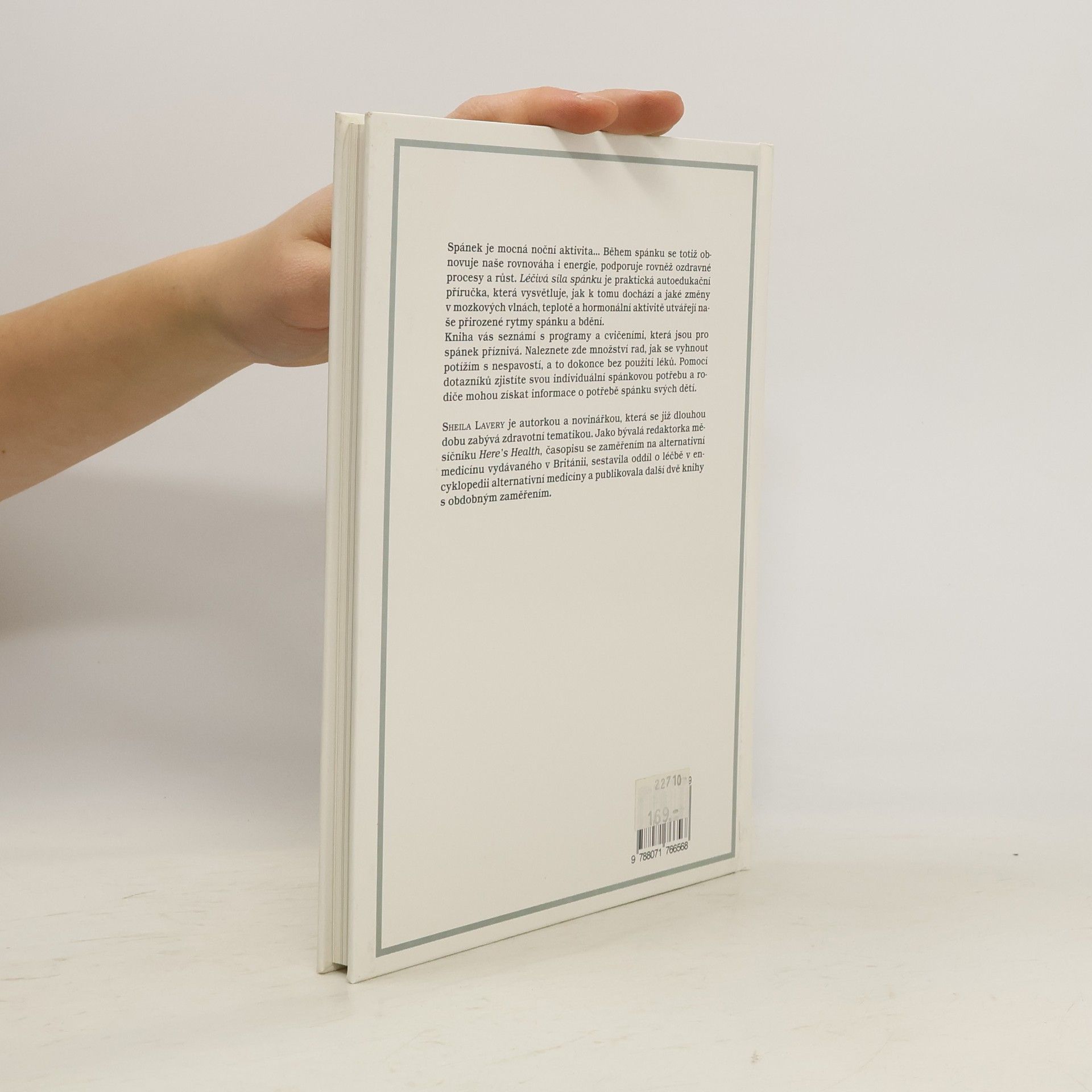 Spánek je mocná noční aktivita... Během spánku se totiž obnovuje naše rovnováha i energie, podporuje rovněž ozdravné procesy a růst. Léčivá síla spánku je praktická autoedukační příručka, která vysvětluje, jak k tomu dochází a jaké změny v mozkových vlnách, teplotě a hormonální aktivitě utvářejí naše přirozené rytmy spánku a bdění. Kniha vás seznámí s programy a cvičeními, která jsou pro spánek příznivá. Naleznete zde množství rad, jak se vyhnout potížím s nespavostí, a to dokonce bez použití léků. Pomocí dotazníků zjistíte svou individuální spánkovou potřebu a rodiče mohou získat informace o potřebě spánku svých dětí.