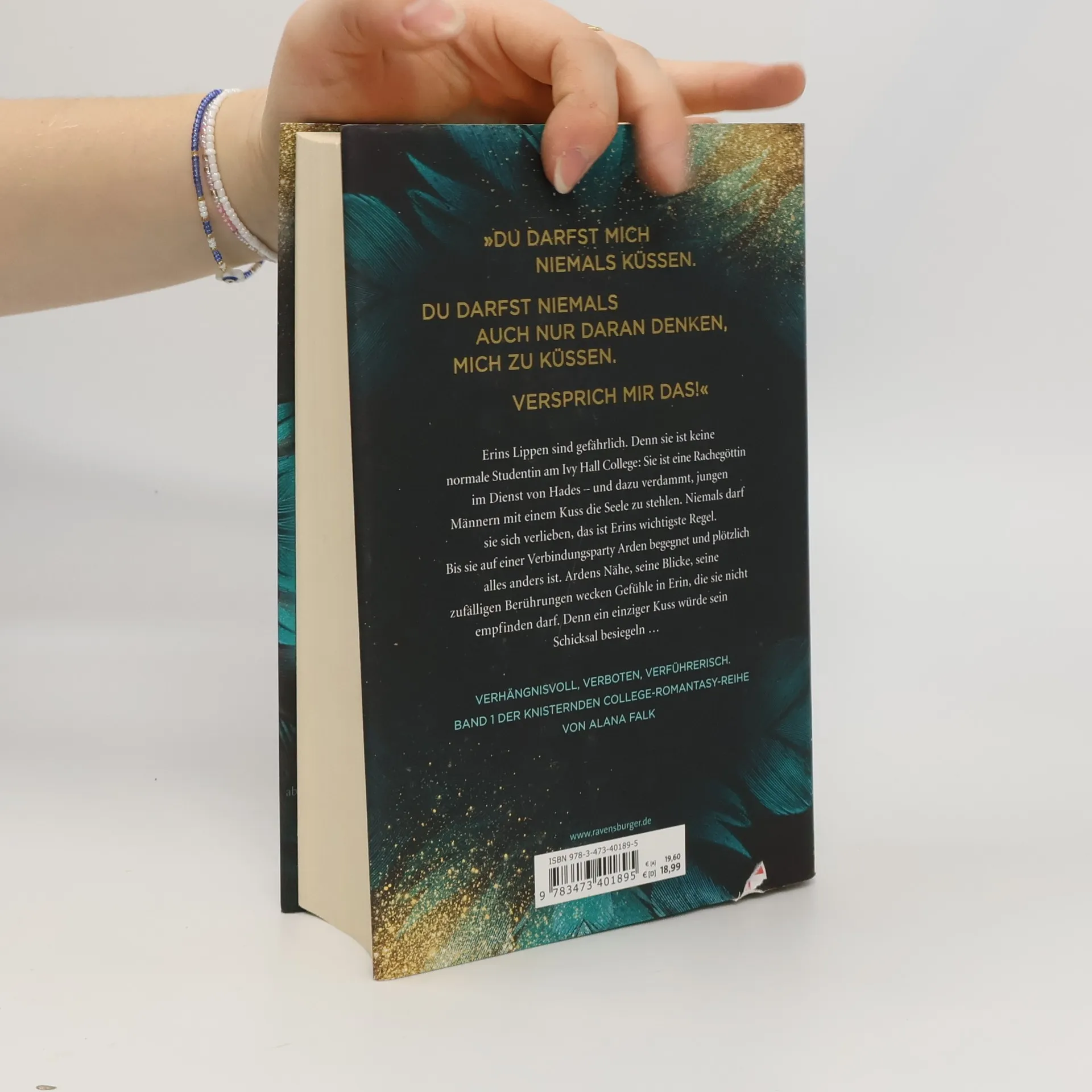 „Du darfst mich niemals küssen. Du darfst niemals auch nur daran denken, mich zu küssen. Versprich mir das!“ Erins Lippen sind gefährlich. Denn sie ist keine normale Studentin am Ivy Hall College: Sie ist eine Rachegöttin im Dienst von Hades – und dazu verdammt, jungen Männern mit einem Kuss die Seele zu stehlen. Niemals darf sie sich verlieben, das ist Erins wichtigste Regel. Bis sie auf einer Verbindungsparty Arden begegnet und plötzlich alles anders ist. Ardens Nähe, seine Blicke, seine zufälligen Berührungen wecken Gefühle in Erin, die sie nicht empfinden darf. Denn ein einziger Kuss würde sein Schicksal besiegeln … Verhängnisvoll, verboten, verführerisch. Band 1 der knisternden College-Romantasy-Reihe von Alana Falk
