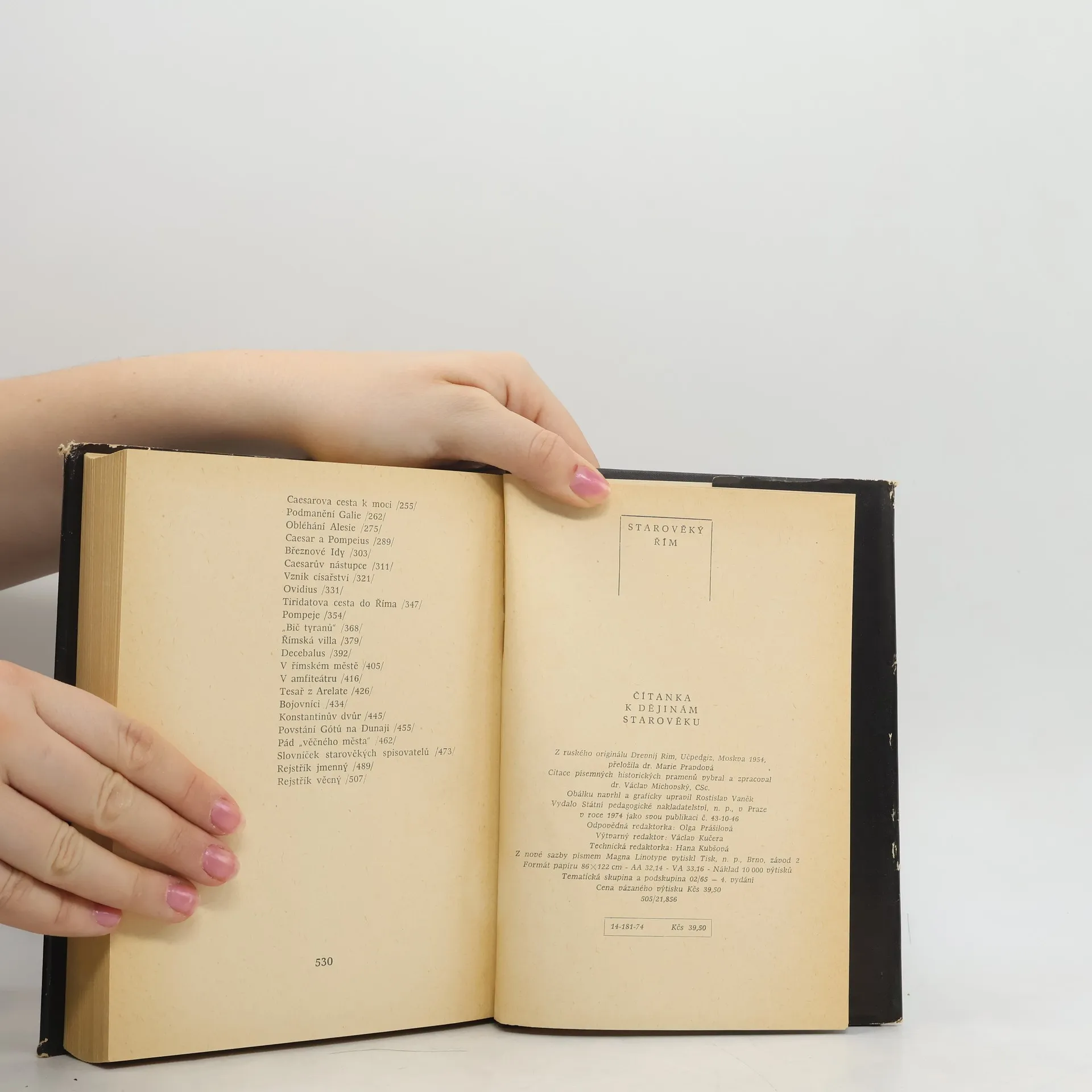 Čítanka k dějinám starověkého Říma má ve srovnání s čítankou k dějinám starověkého Řecka ještě některé přednosti, a to především v tom, že autoři pracovali s náměty čerpanými z antické literatury volněji. Vyskytuje se mnohem méně populárně vědeckého pojednání a vyprávění má častěji podobu beletristickou, formu povídky. Čerpali přitom ze starověkých pramenů nejrůznější povahy, z historických děl starověkých spisovatelů. V úvodních povídkách o založení Říma, o prvních králích, o vzniku římské republiky z díla historika Livia Ab urbe condita libri (Od založení města - rozumí se Říma), v povídce o Caesarově cestě k moci z díla Plutarchova,… 4., upravené a doplněné vydání