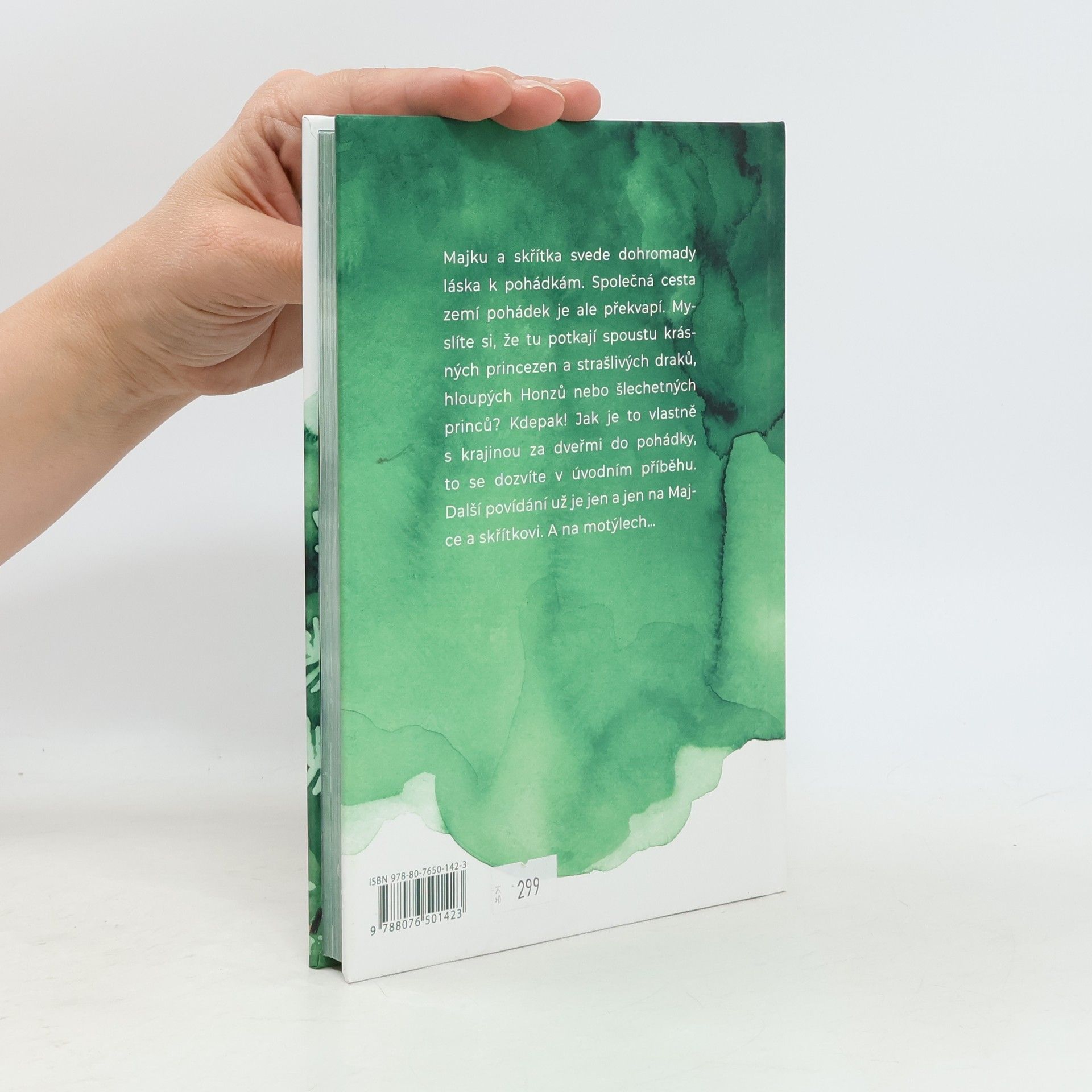 Majku a skřítka svede dohromady láska k pohádkám. Společná cesta zemí pohádek je ale překvapí. Myslíte si, že tu potkají spoustu krásných princezen a strašlivých draků, hloupých Honzů nebo šlechetných princů? Kdepak! Jak je to vlastně s krajinou za dveřmi do pohádky, to se dozvíte v úvodním příběhu. Další povídání už je jen a jen na Majce a skřítkovi. A na motýlech…