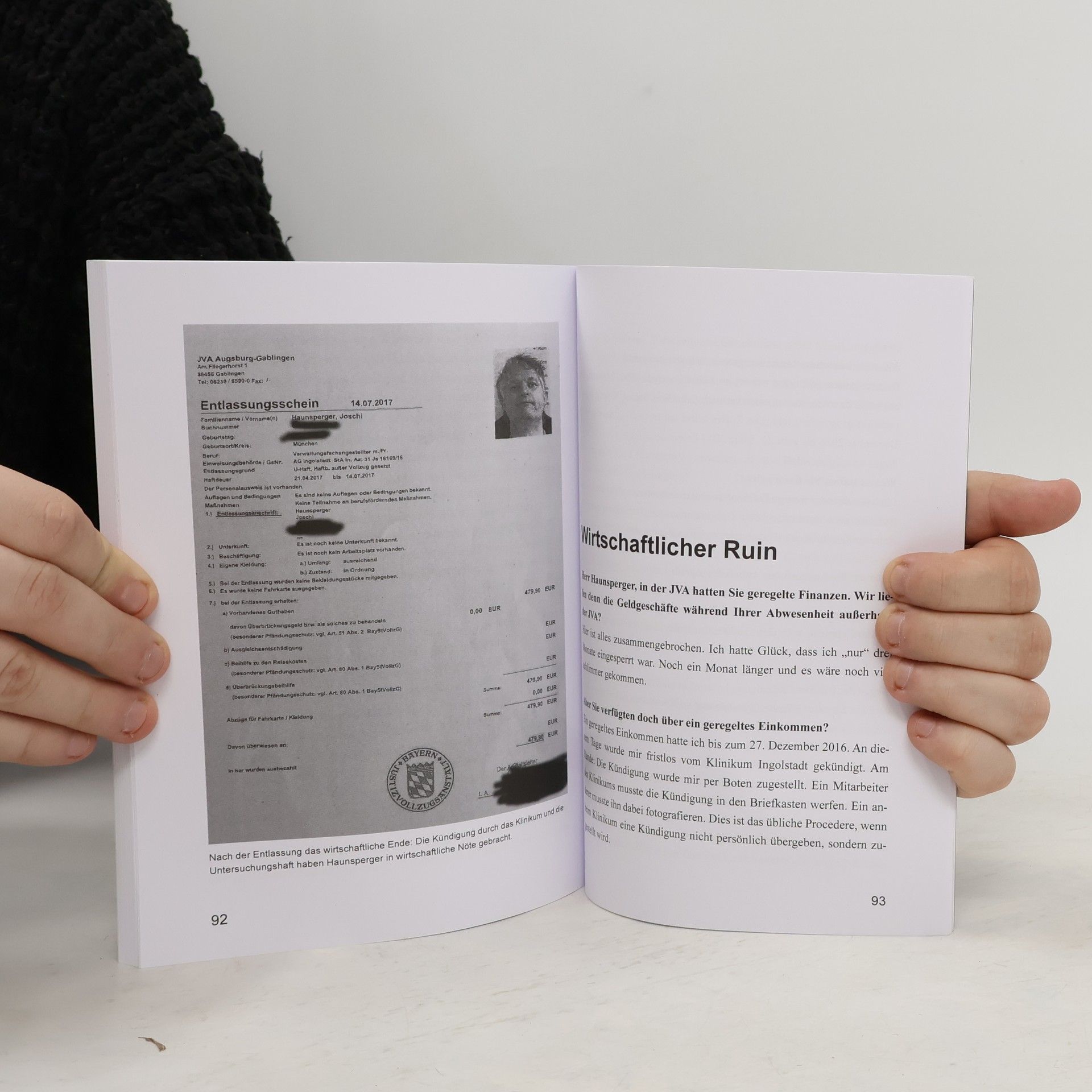 Joschi Haunsperger war Pressesprecher des Klinikums Ingolstadt. Im Zuge der Ermittlungen gegen dessen damaligen Geschäftsführer Heribert Fastenmeier geriet er ins Visier der Staatsanwaltschaft. Letztendlich wurde er nicht als Täter sondern als Gehilfe Fastenmeiers, auf dessen Weisungen er gehandelt hatte, zu einer Bewährungsstrafe von 10 Monaten verurteilt. Dabei wurde festgestellt, dass er sich selbst nicht bereichert hat. Im Buch schildert er seine Erlebnisse als Beschuldigter – insbesondere in der Untersuchungshaft in Gablingen-Augsburg, wo später auch Rupert Stadler in Untersuchungshaft eingeliefert wurde. Hermann Käbisch ist Jurist und Inhaber des HMK Multi Media Verlages. Er interviewte Haunsperger und fasst die juristischen Ergebnisse zusammen.