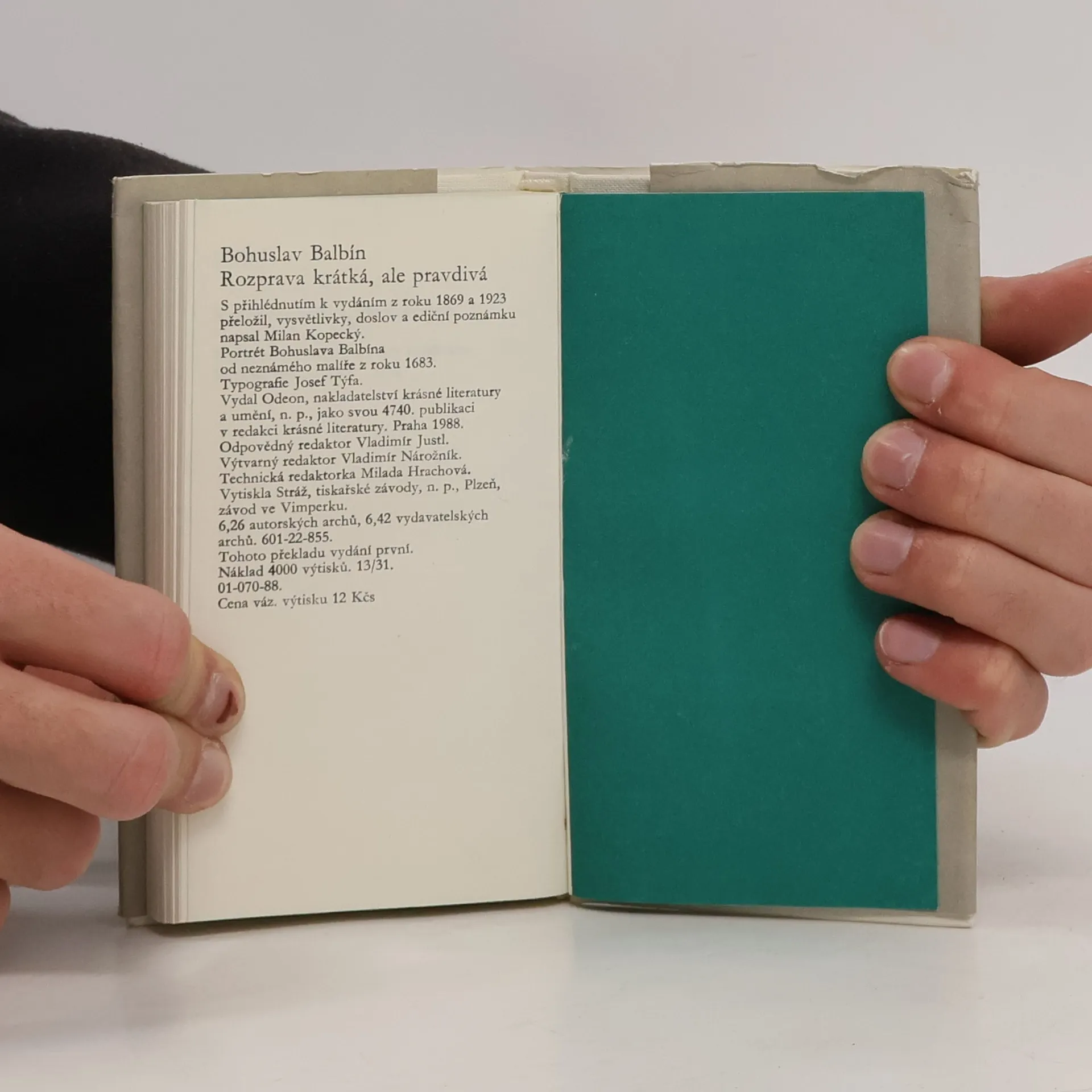 Dissertatio apologetica pro lingua Slavonica, praecipue Bohemica - Krátká, ale pravdivá rozprava o kdysi šťastném, nyní však přeubohém stavu Českého království, zvláště pak o vážnosti českého neboli slovanského jazyka v Čechách, také o trestuhodných úmyslech na jeho vyhlazení a jinýchzáležitostech s tím souvisících. Bohuslav Balbín S přihlédnutím k vydáním z roku 1869 a 1923 přeložil, vysvětlivky, doslov a ediční poznámku napsal Milan Kopecký. Vydáno u příležitosti 300. výročí úmrtí Bohuslava Balbína.