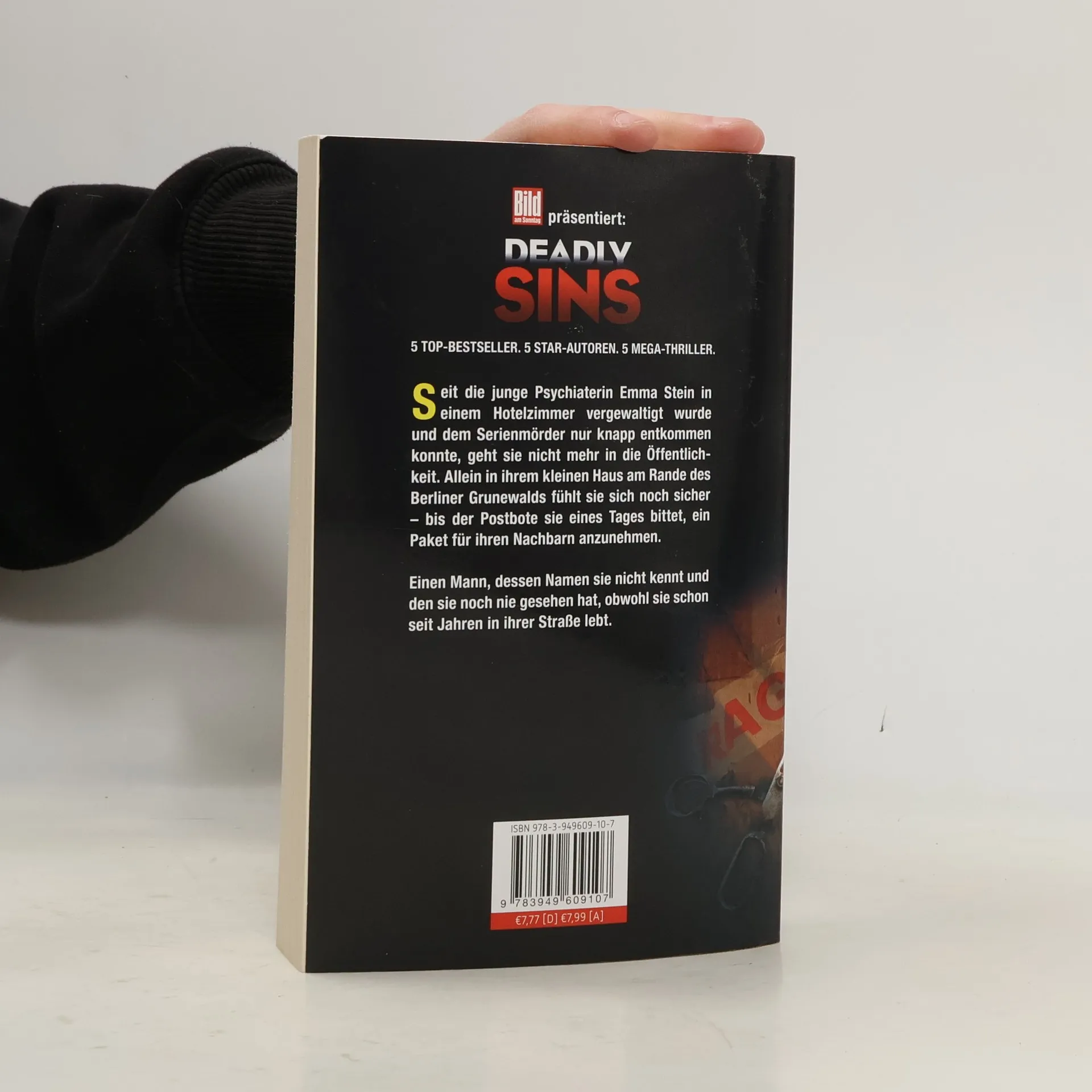 Seit die junge Psychiaterin Emma Stein in einem Hotelzimmer vergewaltigt wurde und dem Serienmörder nur knapp entkommen konnte, geht sie nicht mehr in die Öffentlichkeit. Allein in ihrem kleinen Haus am Rande des Berliner Grunewalds fühlt sie sich noch sicher – bis der Postbote sie eines Tages bittet, ein Paket für ihren Nachbarn anzunehmen. Einen Mann, dessen Namen sie nicht kennt und den sie noch nie gesehen hat, obwohl sie schon seit Jahren in ihrer Straße lebt.