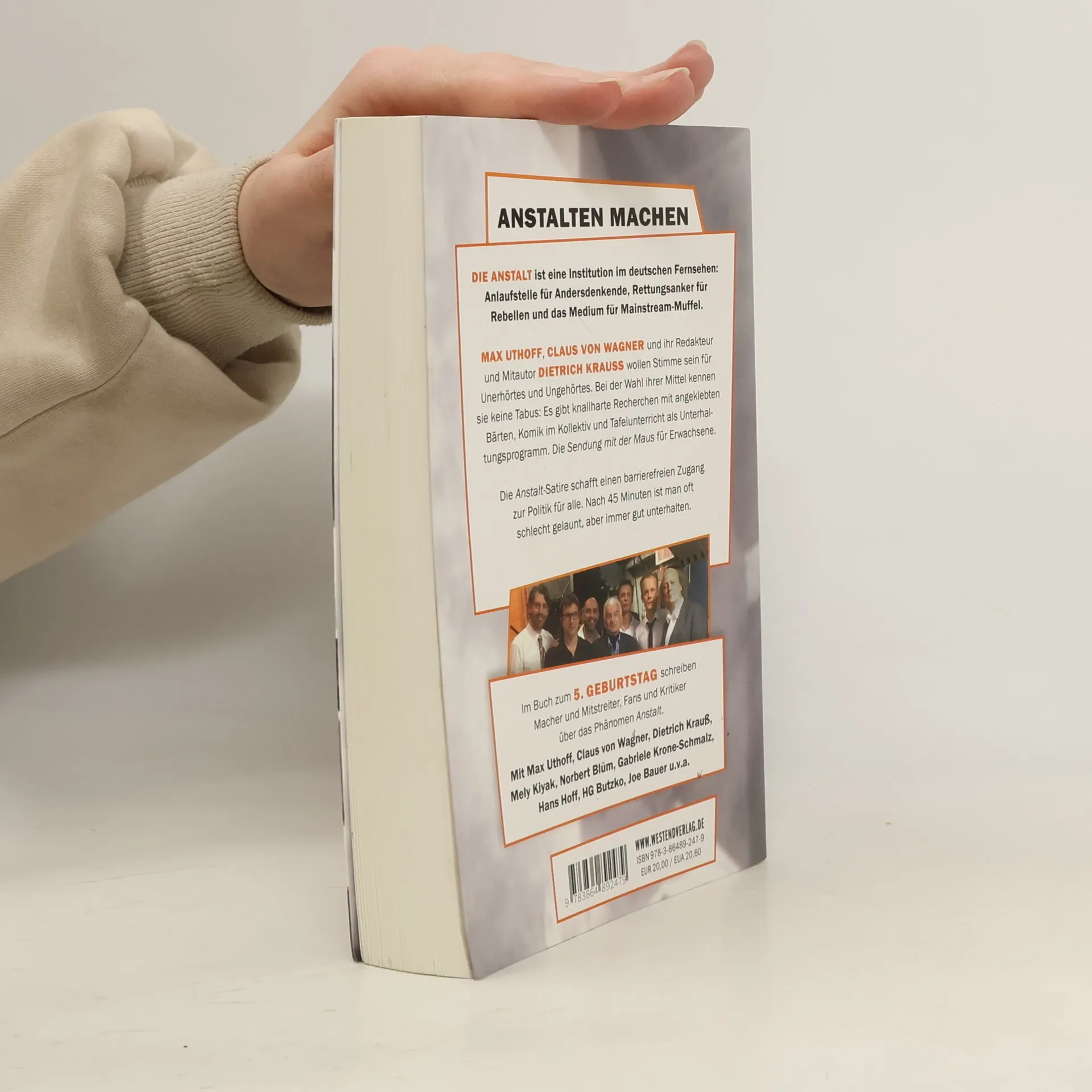 Die Anstalt ist eine Institution im deutschen Fernsehen: Anlaufstelle für Andersdenkende, Rettungsanker für Rebellen und das Medium für Mainstream-Muffel. Max Uthoff, Claus von Wagner und ihr Redakteur und Mitautor Dietrich Krauß wollen Stimme sein für Unerhörtes und Ungehörtes. Bei der Wahl ihrer Mittel kennt sie keine Tabus: Es gibt knallharte Recherchen mit angeklebten Bärten, Komik im Kollektiv und Tafelunterricht als Unterhaltungsprogramm. Die Sendung mit der Maus für Erwachsene. Die Anstalt-Satire schafft einen barrierefreien Zugang zur Politik für alle. Nach 45 Minuten ist man oft schlecht gelaunt, aber immer gut unterhalten. Im Buch zum 5. Geburtstag schreiben Macher und Mitstreiter, Fans und Kritiker über das Phänomen Anstalt. Mit Max Uthoff, Claus von Wagner, Dietrich Krauß, Mely Kiyak, Norbert Blüm, Gabriele Krone-Schmalz, Hans Hoff, HG Butzko, Joe Bauer u. v. a.