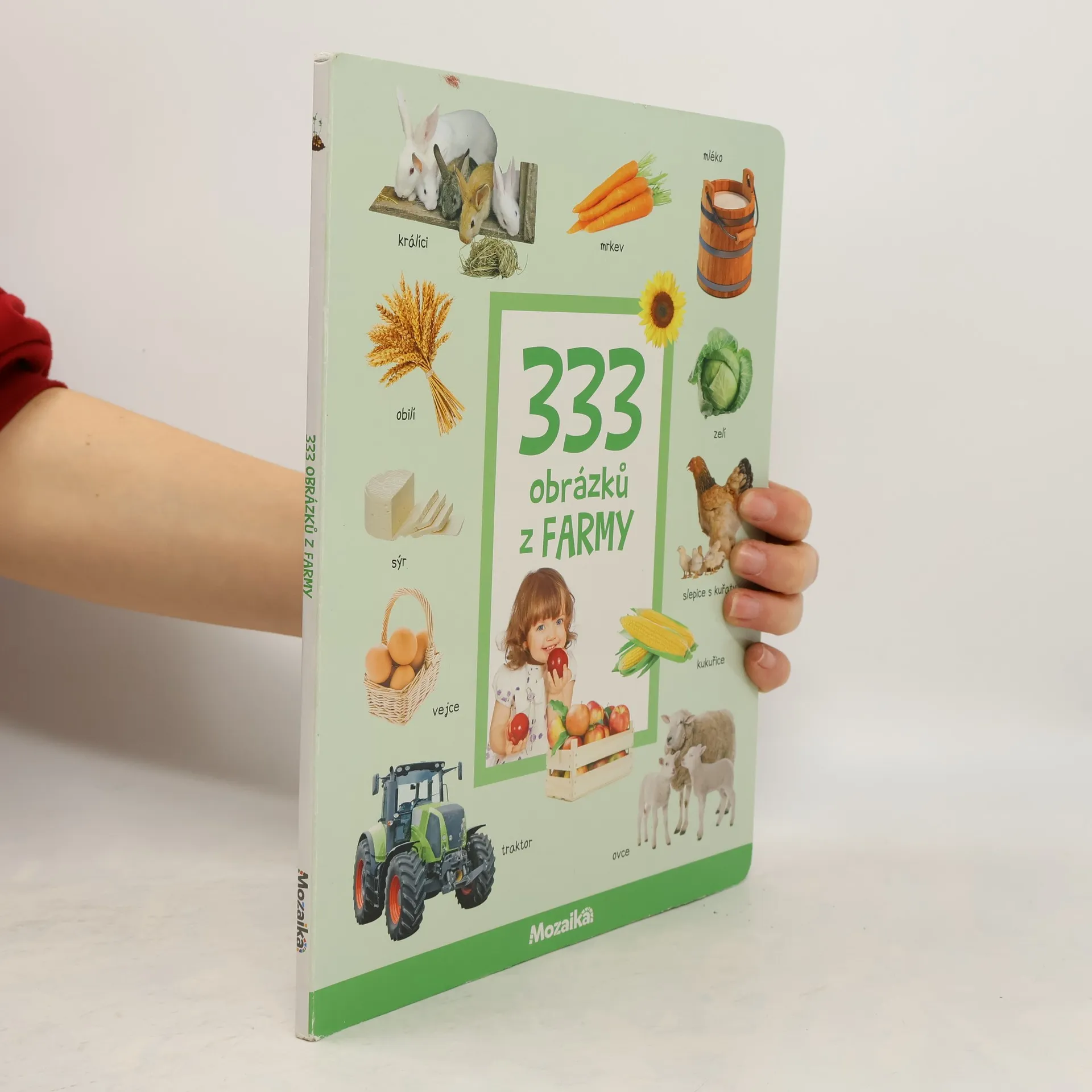 Barevné rozkládací leporelo pro děti s mnoha barevnými fotografiemi. Obsahuje 333 obrázků z farmy, které jsou tematicky seřazeny.