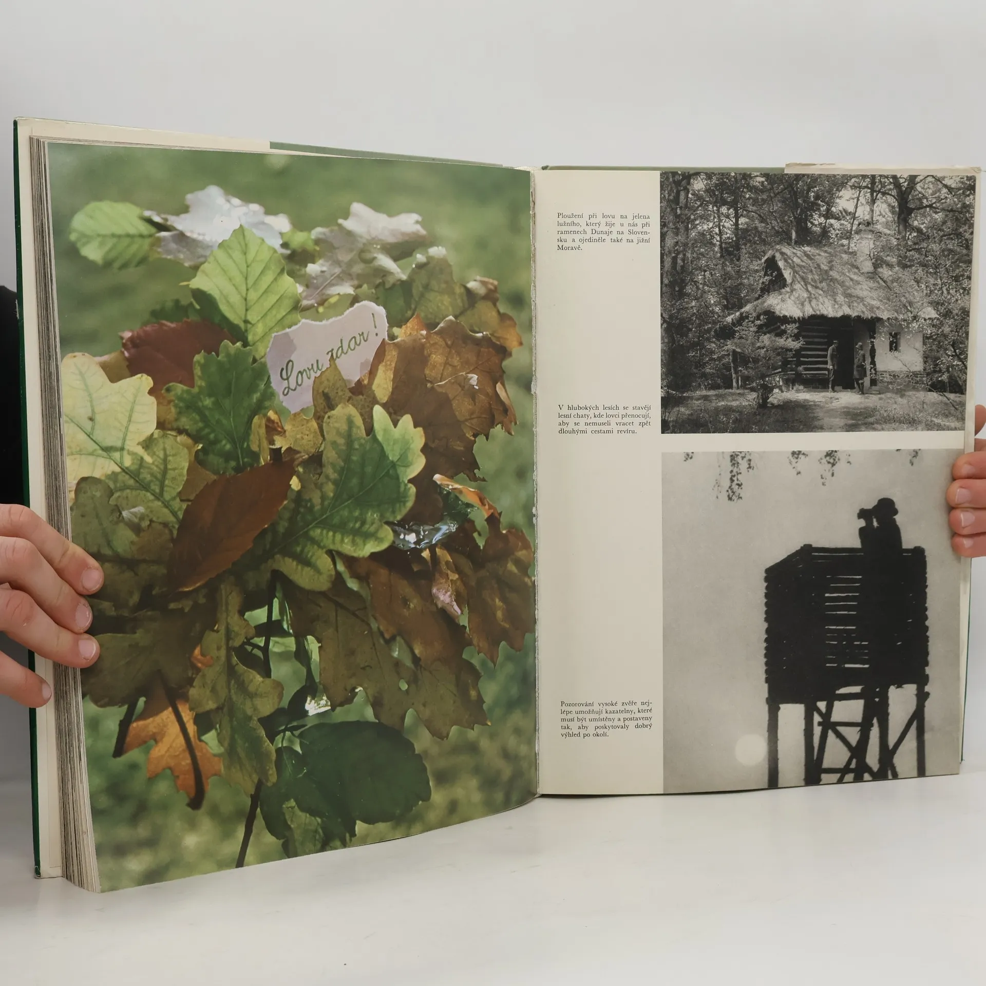 Kniha obsahuje soubor fotografií, podávajících stručný obraz československé myslivosti ve všech jejich obdobích. Snímky zachycují naše hlavní lovná zvířata (zajíce, koroptve, srnce, jeleny, vzácné oborní druhy) živá v přirozeném prostředí, jakož i různé druhy lovu, jež se uplatňujív naší myslivosti (čekaná, polní nebo lesní ploužení, česká leč, naháňky, střílení, norování, fretkování atd.). Doprovodný text podává některá vysvětlení a poučení, vztahující se k mysliveckému hospodaření.