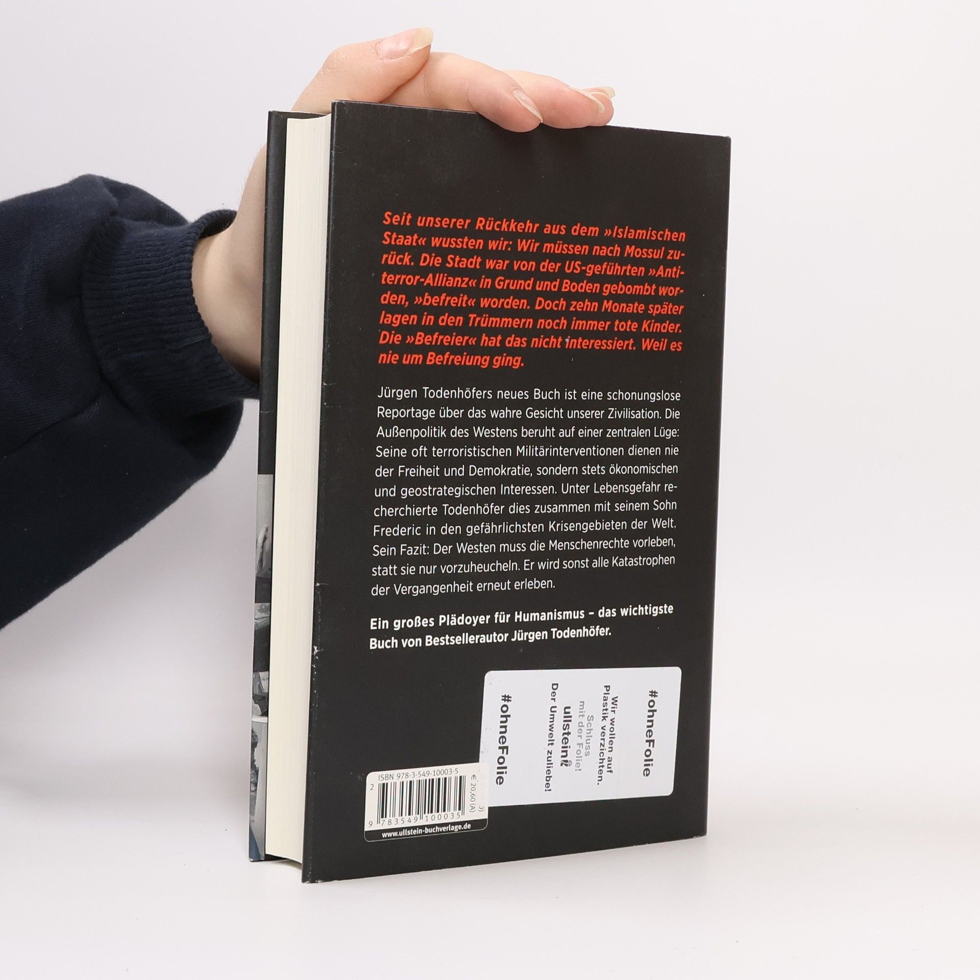 Ein großes Plädoyer für Humanismus, eine schonungslose Reportage über das wahre Gesicht unserer Zivilisation und ein Frontbericht aus den Krisengebieten der Welt – das wichtigste Buch von Bestsellerautor Jürgen Todenhöfer Die Außenpolitik des Westens beruht auf einer zentralen Lüge: Seine oft terroristischen Militärinterventionen dienen nie der Freiheit und Demokratie, sondern stets ökonomischen und geostrategischen Interessen. Unter Lebensgefahr recherchierte Jürgen Todenhöfer dies zusammen mit seinem Sohn Frederic in den gefährlichsten Krisengebieten der Welt. Sein Fazit: Der Westen muss die Menschenrechte vorleben, statt sie nur vorzuheucheln. Und seine Medien müssen damit aufhören, diese Heuchelei zu decken. Der Westen wird sonst alle Katastrophen der Vergangenheit erneut erleben. Er muss andere Völker und Kulturen so behandeln, wie er selbst behandelt werden will. Nur dann hat er eine Zukunft.