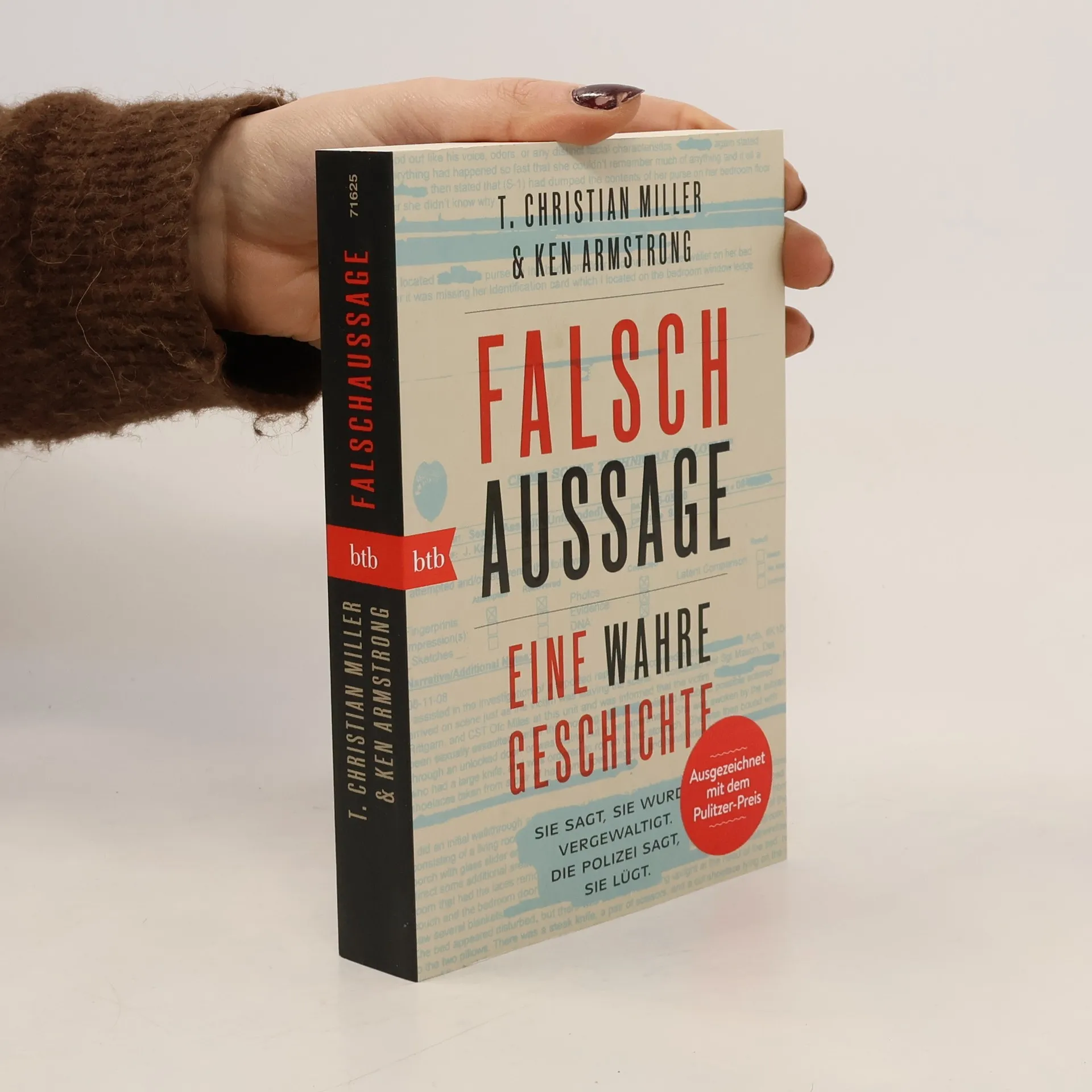 »Ein Buch, das im Genre True Crime in der obersten Liga spielt.« (Hannes Hintermeier, FAZ) Die vielfach ausgezeichneten Journalisten T. Christian Miller und Ken Armstrong erzählen die wahre Geschichte der 18jährigen Marie, die, als sie bei der Polizei ihre brutale Vergewaltigung anzeigt, nicht als Opfer, sondern als Verdächtige behandelt wird. Die Beamten bezichtigen sie der Falschaussage und statt den Täter zu suchen, wird Marie selbst vor Gericht gebracht. Mehr als zwei Jahre später kommen zwei couragierte Kriminalbeamtinnen, die eine Verbindung zu weiteren Vergewaltigungsfällen herstellen, einem brutalen Serientäter auf die Spur und bringen am Ende die schockierende Wahrheit ans Licht. Basierend auf Ermittlungsakten und Interviews mit den wichtigsten Beteiligten, ist »Falschaussage« eine unglaubliche Geschichte über Lügen, Zweifel und den unbeirrbaren Kampf um Gerechtigkeit, die schonungslos offenlegt, wie bis heute mit sexueller Gewalt umgegangen wird – und dass viel zu oft immer noch die Opfer an den Pranger gestellt werden und nicht die Täter.