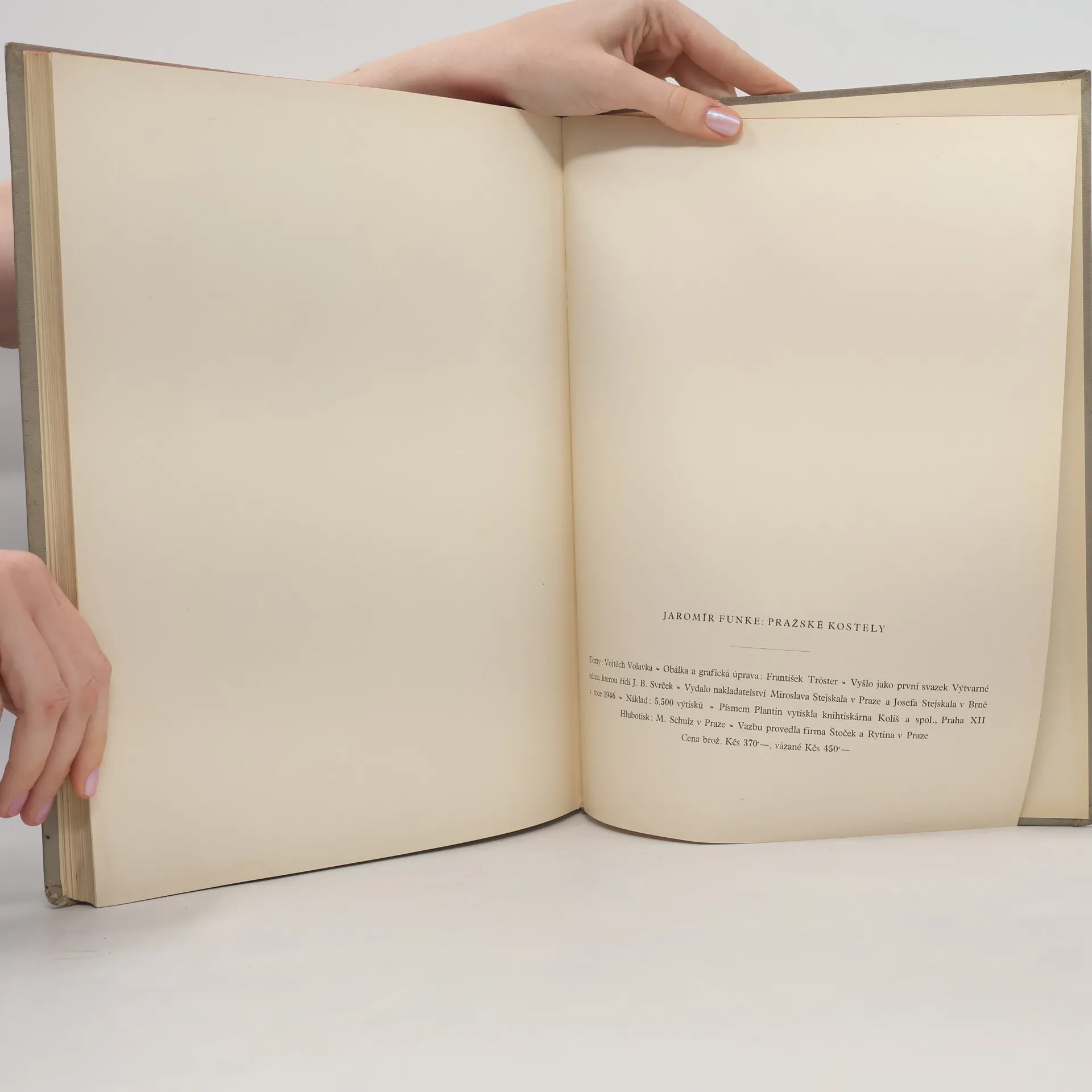 Soubor Funkeho velkoformátových černobílých snímků doplňuje historicko-psychologická skica českého historika a archiváře V. Vojtíška. Obrazová i textová část knihy vznikla za 2. světové války. Základem se stal soubor Funkeho fotografií pražských kostelů. Historická a architektonická dokumentárnost snímků postupně rostla, tento vývoj však přerušila fotografova smrt a soubor zůstal nedokončen. Vojtíškův komentář nechce být slohově kritickým rozborem pražské církevní architektury, zdůrazněna je spíše stránka citově pražská a opticky dojmová. Kniha je svého druhu dokumentem poněkud zjitřeného vztahu autorů k domácím památkám v letech okupace.
