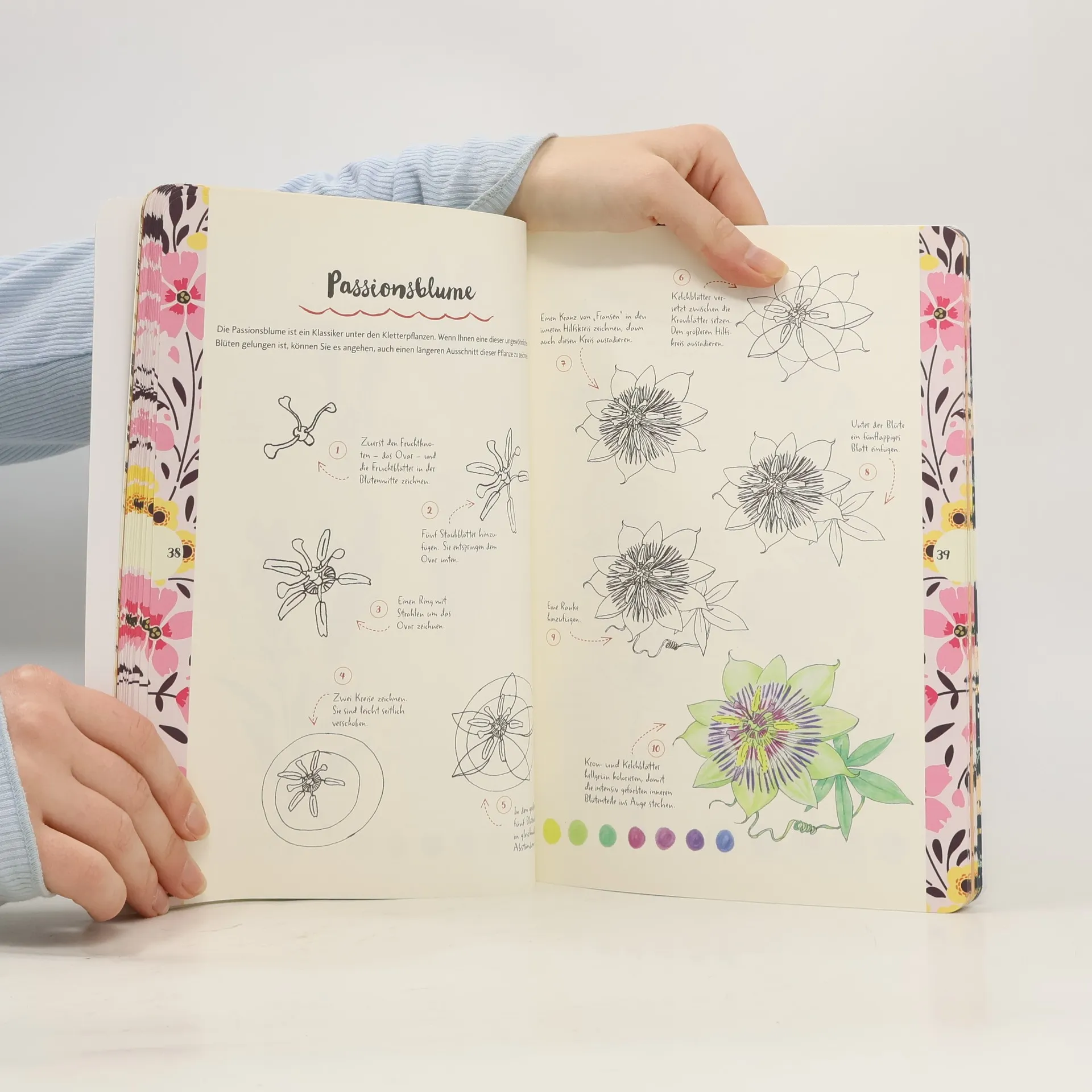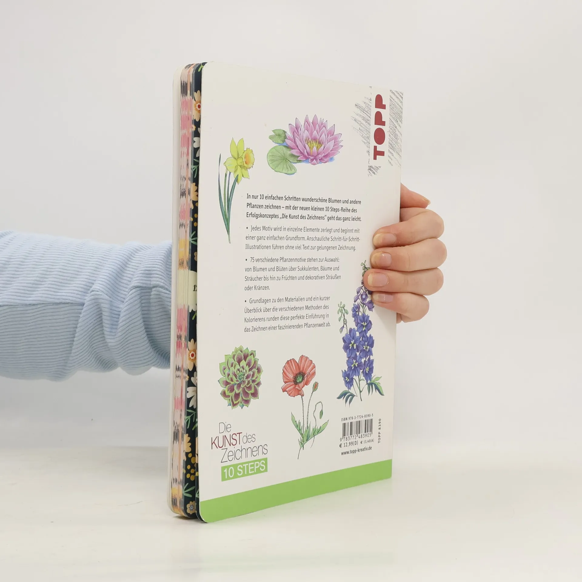 In nur 10 einfachen Schritten wunderschöne Blumen und andere Pflanzen zeichnen – mit der neuen kleinen 10 Steps-Reihe des Erfolgskonzeptes „Die Kunst des Zeichnens“ geht das ganz leicht. Jedes Motiv wird in einzelne Elemente zerlegt und beginnt mit einer ganz einfachen Grundform. Anschauliche Schritt-für-Schritt-Illustrationen führen ohne viel Text zur gelungenen Zeichnung. 75 verschiedene Pflanzenmotive stehen zur Auswahl: von Blumen und Blüten über Sukkulenten, Bäume und Sträucher bis hin zu Früchten und dekorativen Sträußen oder Kränzen. Grundlagen zu den Materialien und ein kurzer Überblick über die verschiedenen Methoden des Kolorierens runden diese perfekte Einführung in das Zeichnen einer faszinierenden Pflanzenwelt ab.