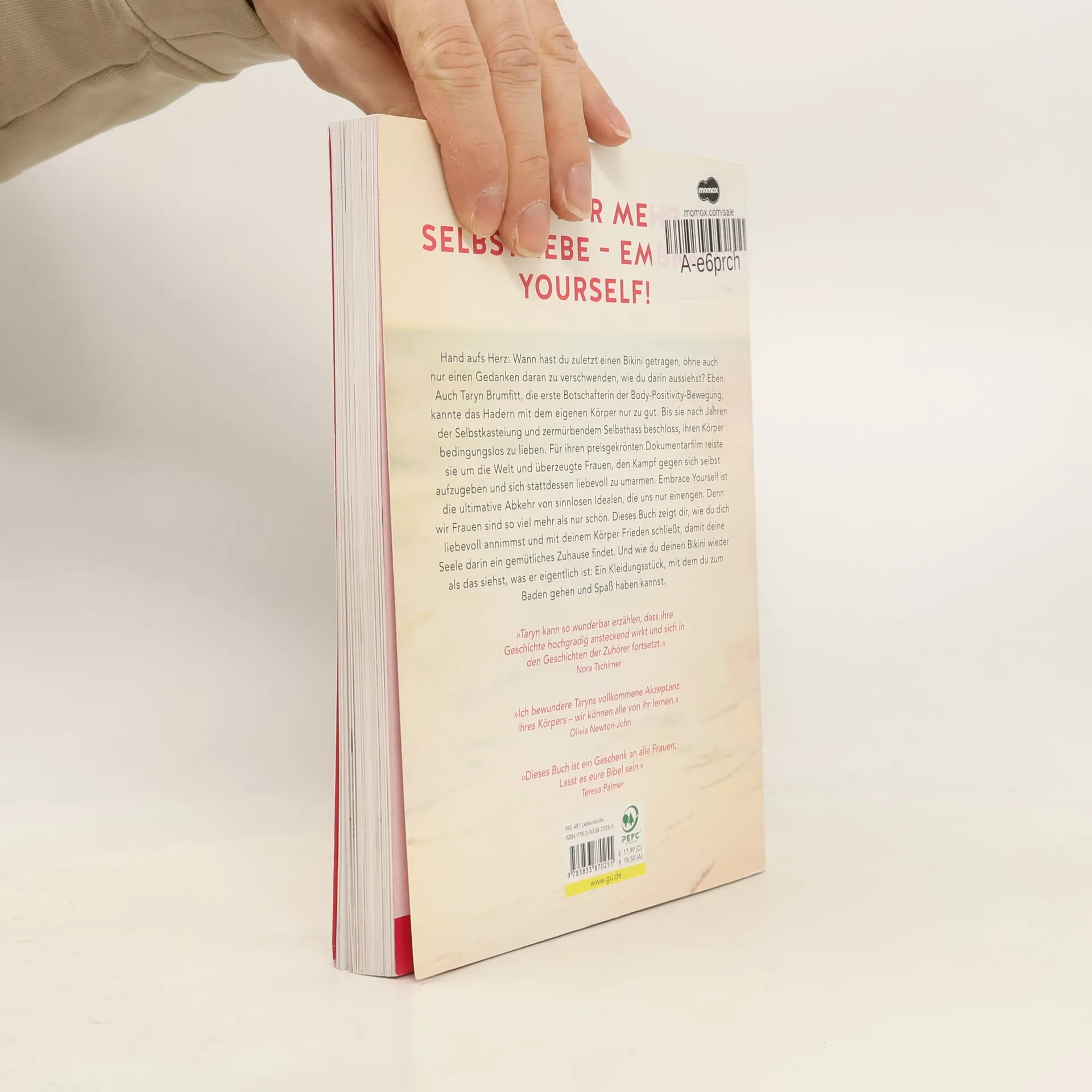 Es ist Zeit, uns selbst bedingungslos selbst zu umarmen! Egal ob wir dem gängigen Frauenbild entsprechen, egal wie vermeintlich unperfekt wir sein mögen. Taryn Brumfitt macht es vor – mit Liebe, Leidenschaft, Humor und großem Selbstmitgefühl. Und sie zeigt jeder Frau, wie ihr das ebenfalls gelingt. An ihrer Seite ist Nora Tschirner, die Brumfitts Film „Embrace“ in Deutschland produzierte und zum Erfolg machte. Die beiden setzen sich für nicht weniger als eine zweite Emanzipation ein – eine Emanzipation von innen, in der Frauen durch pure Liebe für sich selbst und ihren Körper neue Freiheit und ein neues Selbstbewusstsein finden. Selbstablehnung war gestern! Das neue Motto lautet: Hab Freude am Leben, an deinem Körper, an dir selbst – übe dich in bedingungsloser Selbstliebe!