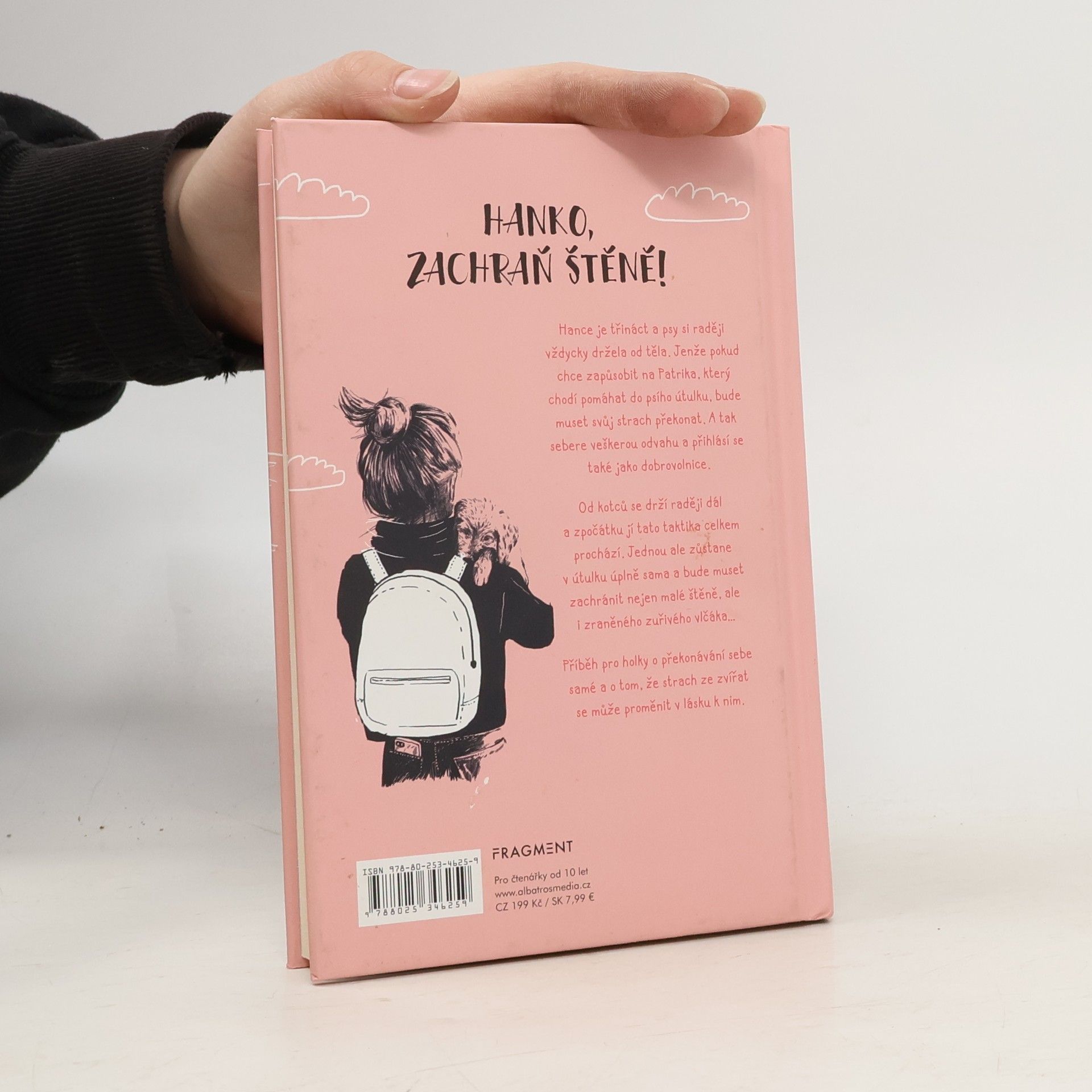 Příběh pro holky o překonávání sebe samé a o tom, že strach ze zvířat se může proměnit v lásku k nim. Hance je třináct a psy si raději vždycky držela od těla. Jenže pokud chce zapůsobit na Patrika, který chodí pomáhat do psího útulku, bude muset svůj strach překonat. A tak sebere veškerou odvahu a přihlásí se také jako dobrovolnice. Od kotců se drží raději dál a zpočátku jí tato taktika celkem prochází. Jednou ale zůstane v útulku úplně sama a bude muset zachránit nejen malé štěně, ale i zraněného zuřivého vlčáka… Příběh pro holky o překonávání sebe sama a o tom, že strach ze zvířat se může proměnit v lásku k nim.