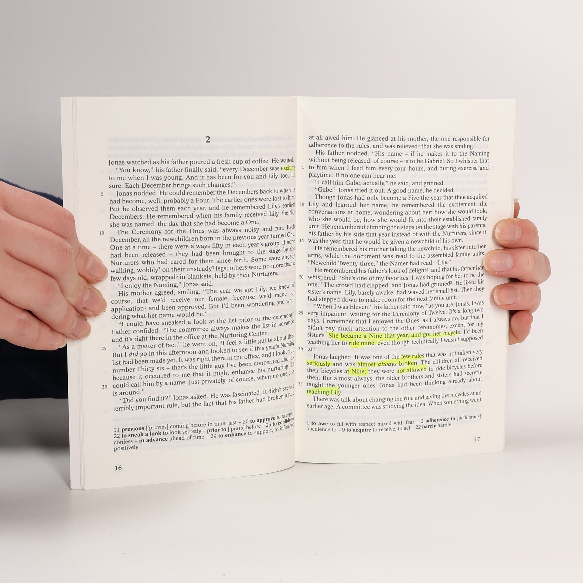 Jonas, the twelve-year-old protagonist of Lois Lowry's prize-winninge novel "The Giver" seems to live in a perfect world. In the Ceremony of Twelve he receives his lifetime assignement: he is chosen to be the new "Receiver of Memory" of his community. During his training, performed by "The Giver of Memory", Jonas finds out about the dark secrets that underlie the apparent harmony of his world