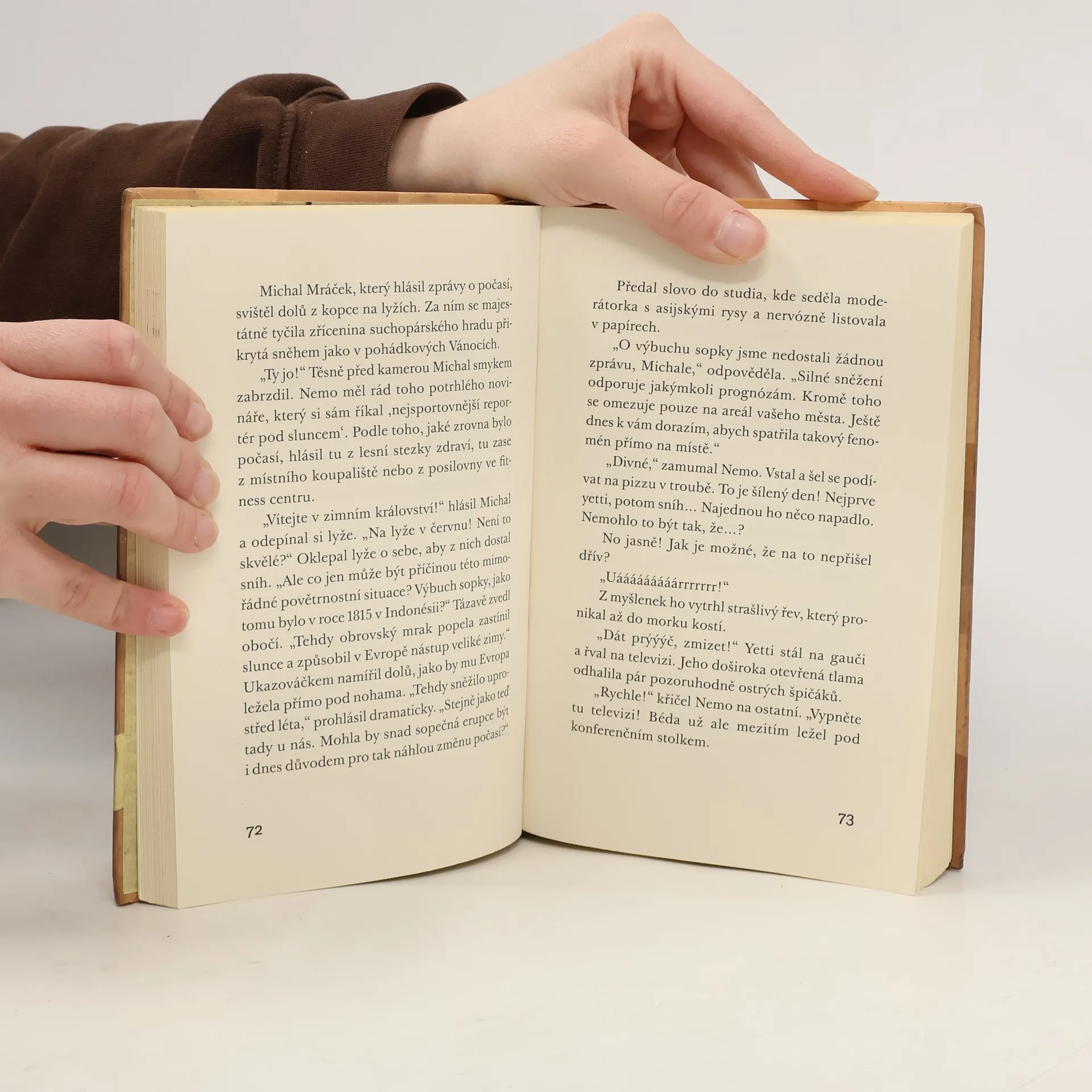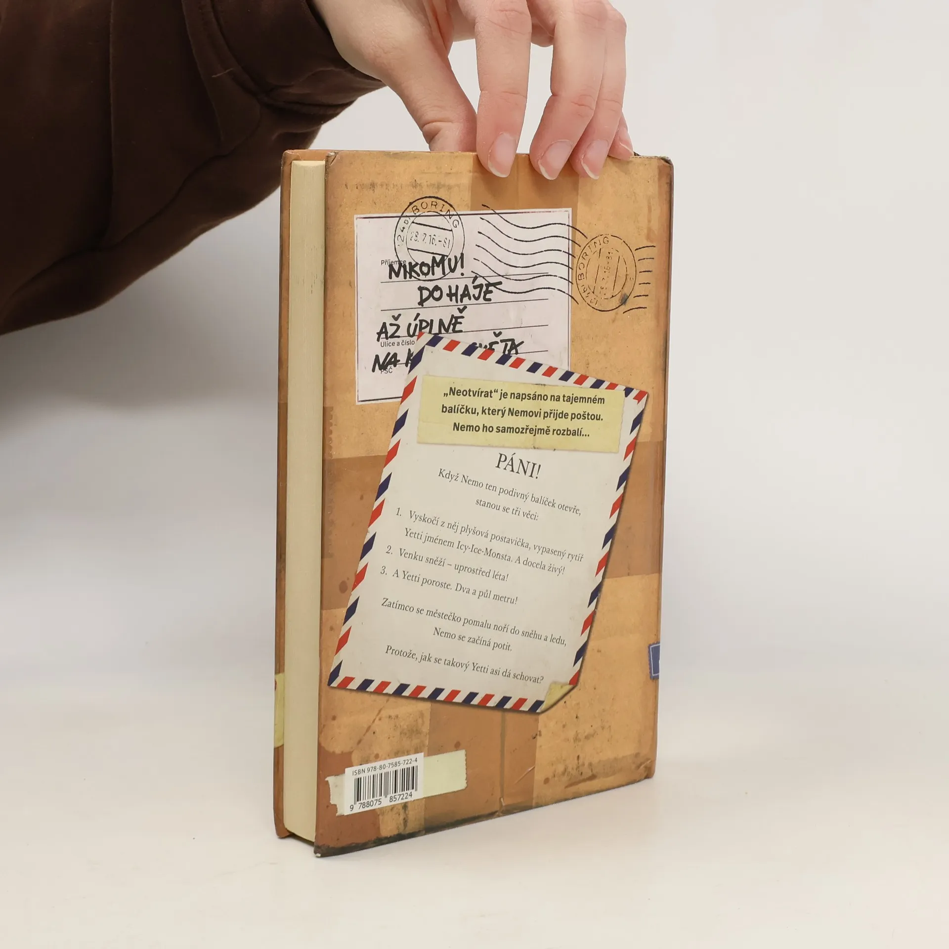 V Horním Suchopáru se téměř nic neděje. Nemo si myslí, že život v městečku je opravdu jedna velká nuda. Všichni jsou tu na sebe pořád hodní, pomáhají si a ještě k tomu je vedro a blíží se konec školního roku. Nemovi ale přijde poštou podivný balíček, na kterém je důrazně napsáno „Neotevírat!“ Nemo ho samozřejmě rozbalí ... Páni! Když tu podivnou zásilku otevře, stanou se tři věci: 1. Vyskočí z něj plyšová postavička, vypasený rytíř Yetti jménem Icy-Ice-Monsta. Zdá se, že je docela živý! 2. Venku sněží – uprostřed léta! 3. A Yetti bude velký. Dva a půl metru. Zatímco se městečko pomalu noří do sněhu a ledu, Nemo se začíná potit. Protože, jak se takový Yetti asi dá schovat? Nemo a jeho přátelé Béda a Otka mají co dělat, aby všechno zvládli. Podaří se jim to? Příběh tří přátel a velkého Yettiho zaujme napínavou zápletkou, spoustou dobrodružství a legrace. Vtipné vyprávění, ve kterém jde v prvé řadě o čas, pobaví i dospělé, třeba při čtení na doboru noc.