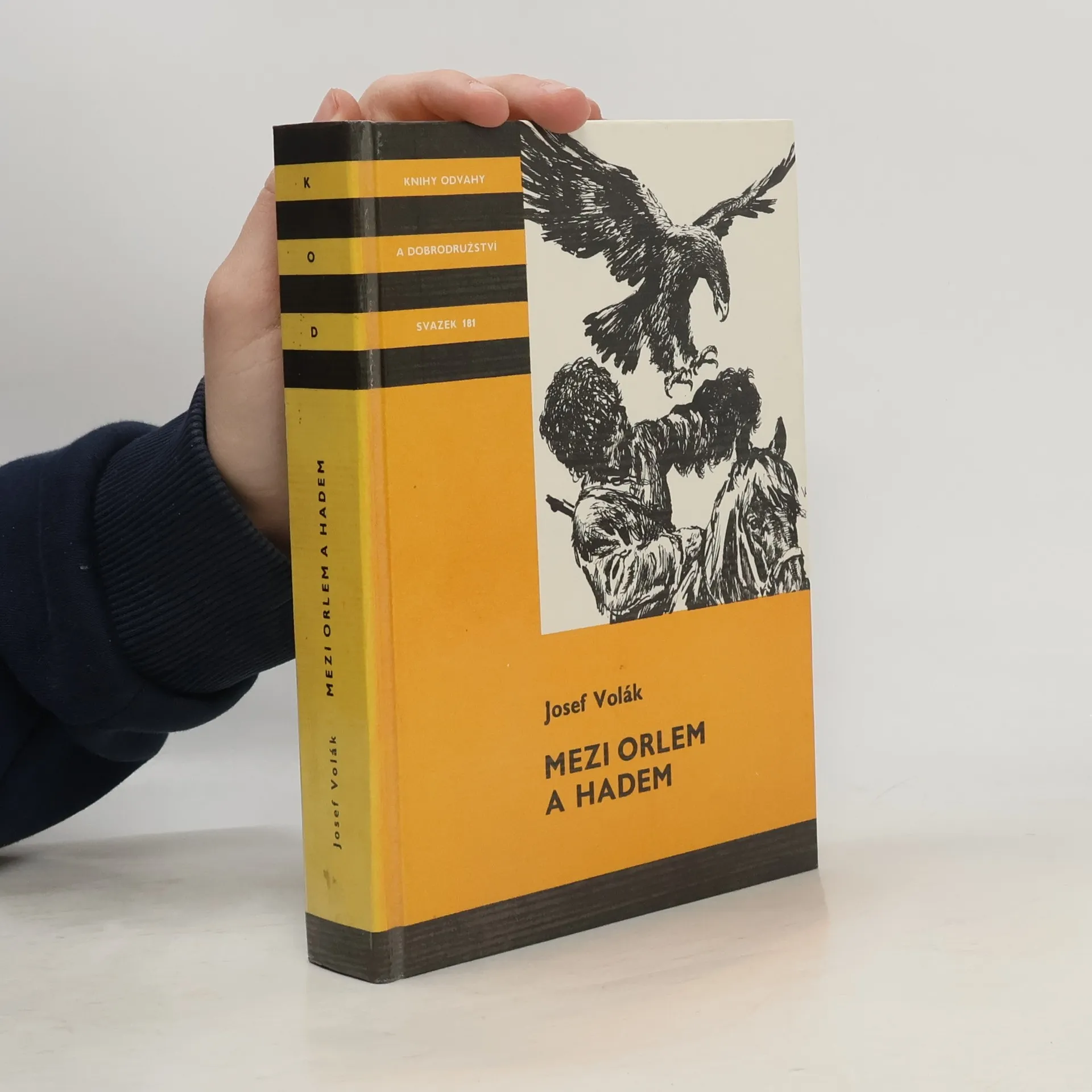 Mezi orlem a hadem je dobrodružný román pro mládež od českého spisovatele Josefa Voláka. Autor v něm spojil své dvě již dříve vydané knihy Divokým Alajem (1985) a Tajemství Uzun-Guru (1988). Román líčí příběhy dvou mladých přátel, Kirgize Zachira a Čecha Petra, kteří o prázdninách cestují s přírodovědeckou karavanou nejprve středoasijským pohořím Alaj a posléze západním Ťan-šanem. Tato hlavní dějová linie je doplněna řadou napínavých příběhů o vyznavačích ďábla jezídech nebo o bojích sovětských pohraničníků s protisovětskými horskými bandity (basmači) ve 20. letech. Tyto příběhy si vyprávějí členové výpravy v době odpočinku. Petr si klade za cíl vyfotografovat, případně chytit, vzácného motýla jasoně Parnassius charltonius v jeho přirozeném vysokohorském prostředí a napsat o něm odborný článek. Ve snaze splnit svůj záměr se vydá sám do hor a zabloudí. Prožije pak mnoho nebezpečných příhod: zažije zemětřesení a málem se utopí v horském potoce, ze kterého jej zachrání dívka Nazira, do které se zamiluje. Střetne se s medvědem a pomůže Naziře zachránit jejího dědečka, který se při zemětřesení zraní. Objeví také starou opuštěnou skrýš basmačů. Nazira pak Zachira a Petra doprovází na další cestě, na které se všichni seznámí se snahou sovětské vlády chránit vzácná zvířata, například orly nebo sněžné levharty.