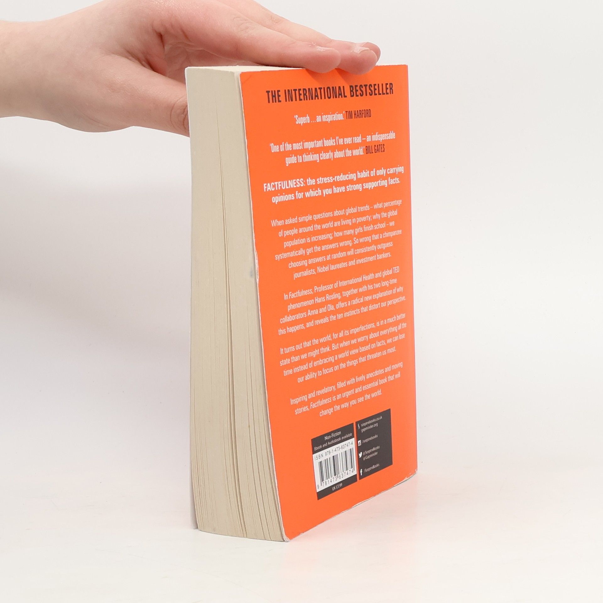 When asked simple questions about global trends -- what percentage of the world's population live in poverty; why the world's population is increasing; how many girls finish school -- we systematically get the answers wrong. So wrong that a chimpanzee choosing answers at random will consistently outguess teachers, journalists, Nobel laureates, and investment bankers. Professor and TED presenter Hans Rosling, together with his two long-time collaborators, Anna and Ola, offers a radical explanation of why this happens. They reveal the ten instincts that distort our perspective. It turns out that the world, for all its imperfections, is in a much better state than we might think. But when we worry about everything all the time instead of embracing a worldview based on facts, we can lose our ability to focus on the things that threaten us most.