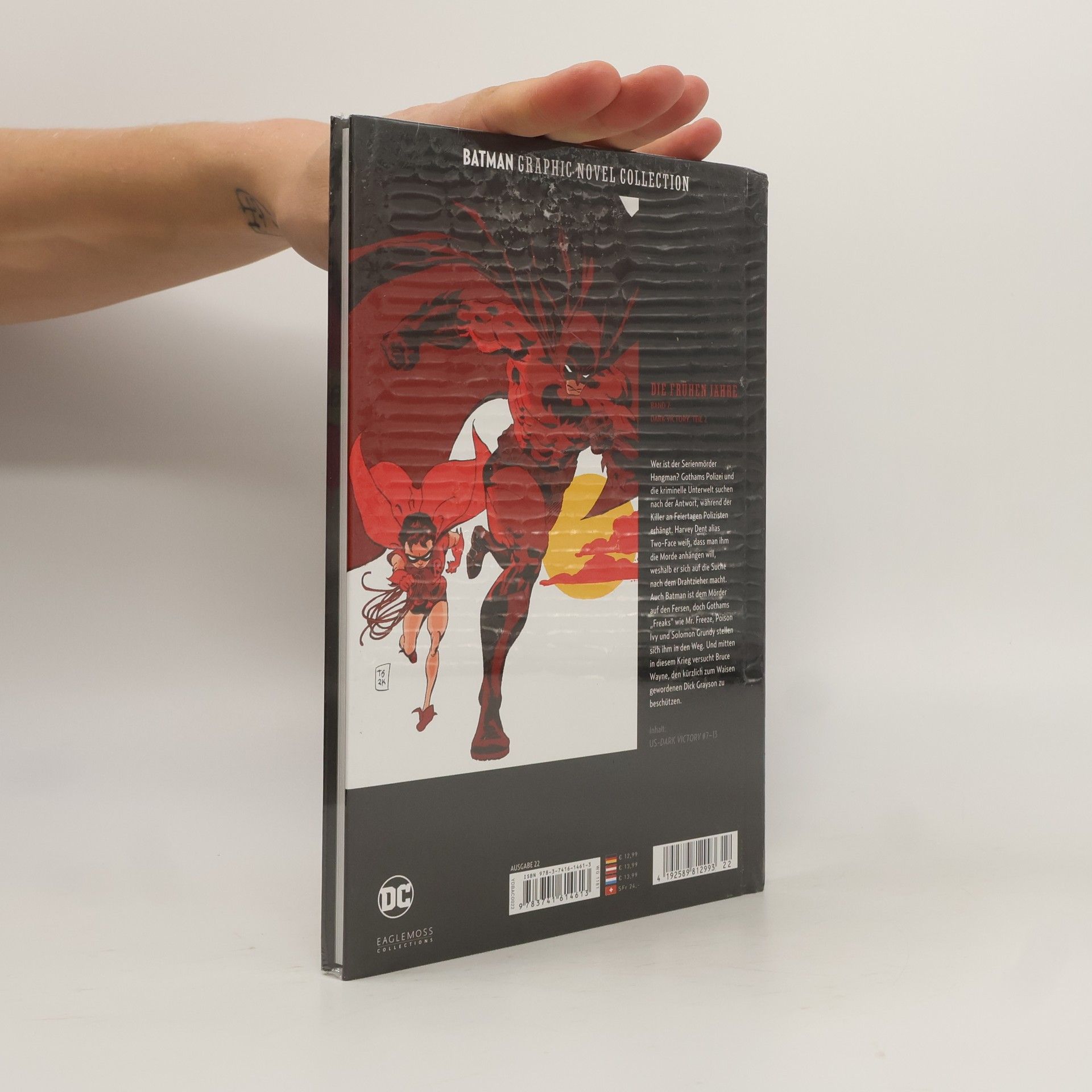 DIE FRÜHEN JAHREBAND 7: DARK VICTORY, TEIL 2Wer ist der Serienmörder Hangman? Gothams Polizei und die kriminelle Unterwelt suchen nach der Antwort, während der Killer an Feiertagen Polizisten erhängt. Harvey Dent alias Two-Face weiß, dass man ihm die Morde anhängen will, weshalb er sich auf die Suche nach dem Drahtzieher macht. Auch Batman ist dem Mörder auf den Fersen, doch Gothams „Freaks“ wie Mr. Freeze, Poison Ivy und Soloman Grundy stellen sich ihm in den Weg. Und mitten in diesem Krieg versucht Bruce Wayne, den kürzlich zum Waisen gewordenen Dick Grayson zu beschützen.Inhalt: US-Dark Victory #7-13