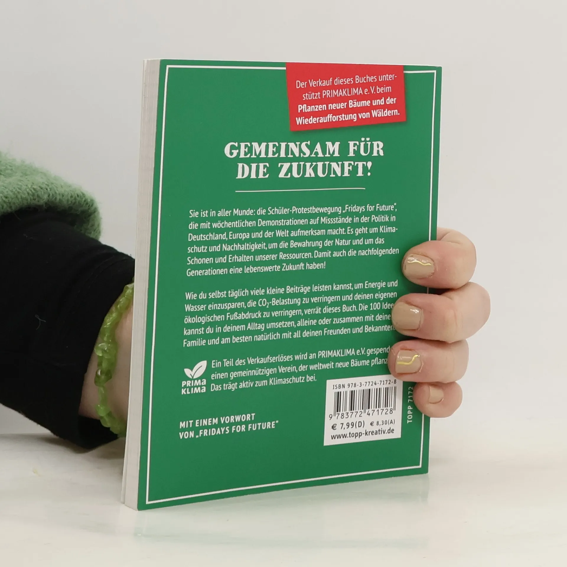 Gemeinsam für die Zukunft! Mit einem Vorwort von „Fridays for Future“. Die Schüler-Protestbewegung „Fridays for Future“ macht derzeit mit wöchentlichen Demonstrationen auf Missstände in der Politik in Deutschland, Europa und der Welt aufmerksam, die die Zukunft der kommenden Generationen gefährden. Es geht um Klimaschutz und Nachhaltigkeit, um die Bewahrung der Natur und der Umwelt und um das Schonen und Erhalten unserer Ressourcen. Wie du als Schüler und Jugendlicher selbst aktiv werden kannst und täglich in deinem Alltag viele kleine Beiträge leisten kannst, um Energie und Wasser einzusparen, die CO2-Belastung zu verringern und deinen eigenen ökologischen Fußabdruck zu verringern, verrät dieses Buch. Es versammelt 100 auch für Kinder und Jugendliche gut machbare Anregungen für einen bewusster gelebten Alltag mit dem Ziel, die Welt für kommende Generationen zu erhalten und nutzbar zu halten. Zudem fördert es aktiv den Klimaschutz, indem ein Teil des Verkaufserlöses pro Buch an PRIMAKLIMA e. V. gespendet wird. Der Verein führt weltweit Aufforstungsprojekte durch und pflanzt neue Bäume, die helfen, die CO2-Emissionen in der Atmosphäre zu kompensieren. Entdeckt, wie viel Potential in kleinen Veränderungen des persönlichen Verhaltens steckt und was sich damit Großes bewirken lässt - denn gemeinsam können wir den Unterschied machen!