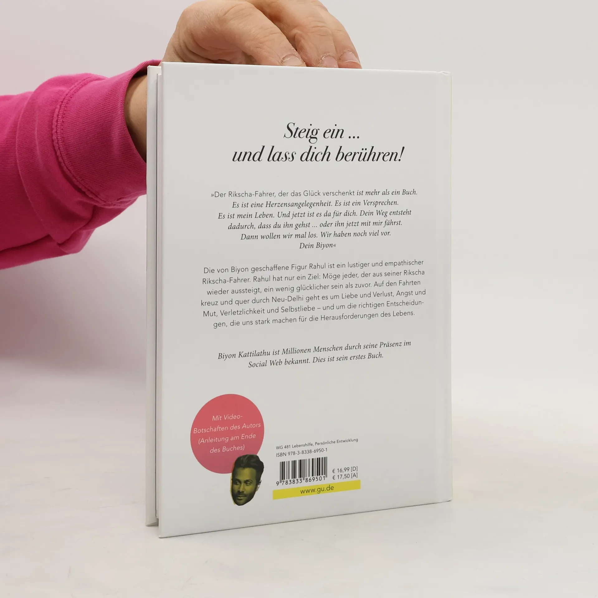 Biyon Kattilathu, Kind indischer Einwanderer, ist DER Motivations-Entertainer im digitalen Raum. Beflügelt von seiner eigenen Geschichte, hat er in kürzester Zeit die Social-Media-Bühne erobert und über seine Kanäle Menschen in Scharen begeistert. Erstmals wendet er sich nun in Buchform an seine Fans: Die Hauptfigur in seinem erzählten Ratgeber ist ein indischer Rikscha-Fahrer. So wie Biyon in seiner Eigenschaft als Speaker und Lebenslehrer, hilft der Rikscha-Fahrer ganz nebenbei auf der Fahrt jedem seiner Gäste bei wichtigen Lebensproblemen. In 12 Kapiteln bzw. Episoden werden die wichtigsten Lebensthemen behandelt, die uns Menschen umtreiben. Es geht um Liebe und Verlust, um Angst und Mut, um Verletzlichkeit und Selbstliebe, um Aufrichtigkeit und das konsequente Verfolgen unserer Lebensziele sowie die Kraft, zu uns zu stehen und Entscheidungen zu treffen, die uns stark machen für die Herausforderungen des Lebens. EXTRA im Buch: Über die GU Mind& Soul Plus App können Videos mit Live-Botschaften des Autors zu jedem Kapitel abgespielt werden.