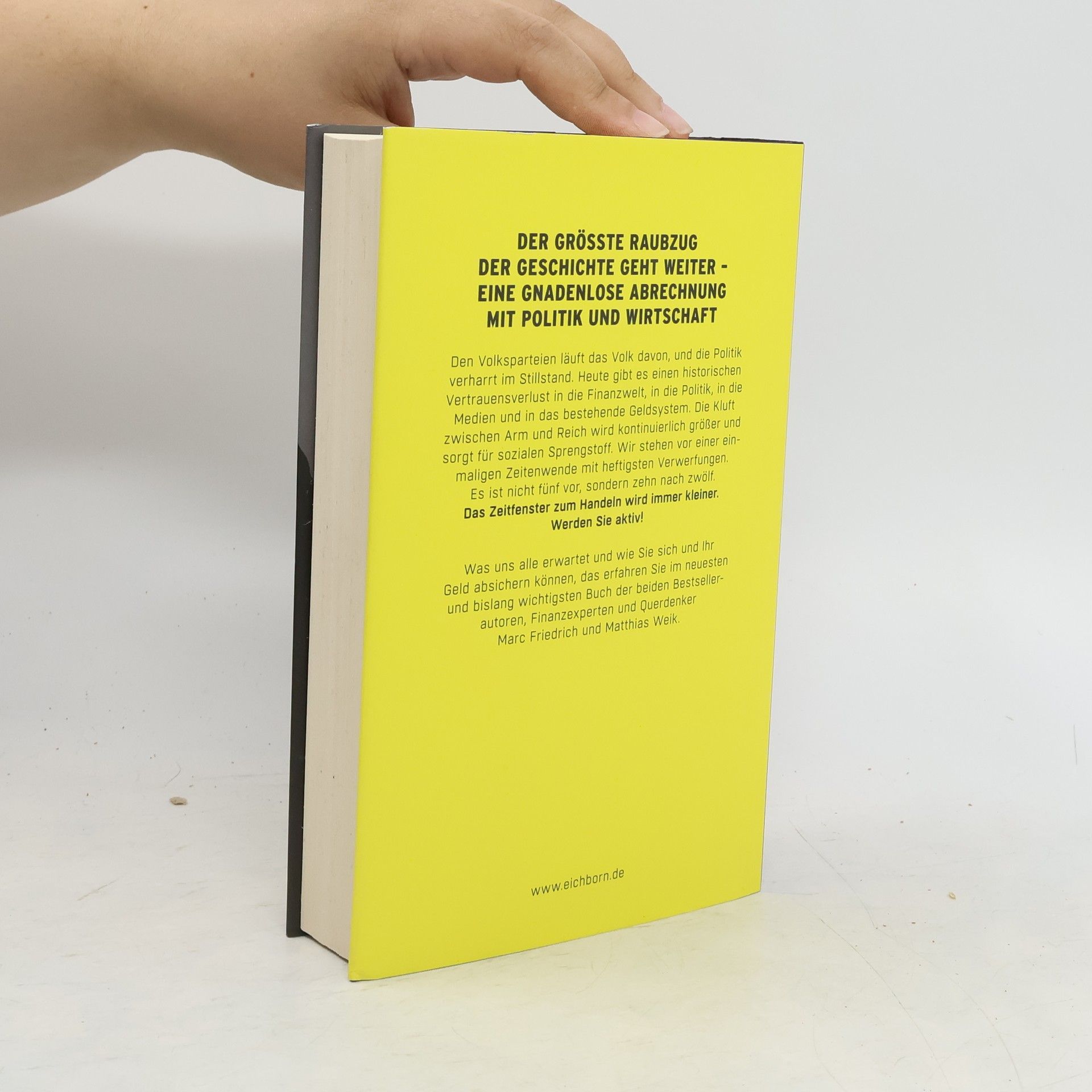 Die Finanzkrise 2008 hat das Fundament unseres Finanzsystems erschüttert und ihre Auswirkungen sind bis heute spürbar. Die massiven Rettungsaktionen der EZB und das historische Experiment mit Nullzinsen enteignen Sparer und Kleinanleger, während eine hohe Steuerlast der Mittelschicht den finanziellen Spielraum nimmt. Zudem wird über Enteignungen nachgedacht, die bald Realität werden könnten. Das Vertrauen in Finanzwelt, Politik und Medien ist seit 2008 drastisch gesunken, und die Kluft zwischen Arm und Reich wächst, was soziale Spannungen verstärkt. Wir stehen vor einer entscheidenden Wende mit enormen Verwerfungen. Das Handlungsfenster schließt sich rasch. Die Bestsellerautoren und Finanzexperten Marc Friedrich und Matthias Weik bieten in ihrem neuesten Werk aktuelle Analysen und scharfe Kritik an den starren Eliten in Wirtschaft und Politik sowie radikale Lösungsvorschläge. Sie zeigen auf, welche Herausforderungen Bürger, Steuerzahler, Sparer und Eigentümer in naher Zukunft erwarten, wenn die Verantwortlichen an ihren gescheiterten Strategien festhalten. Zudem erklären sie verständlich, wie wir unser Geld jetzt schützen können. Seien Sie aktiv und bereiten Sie sich vor!