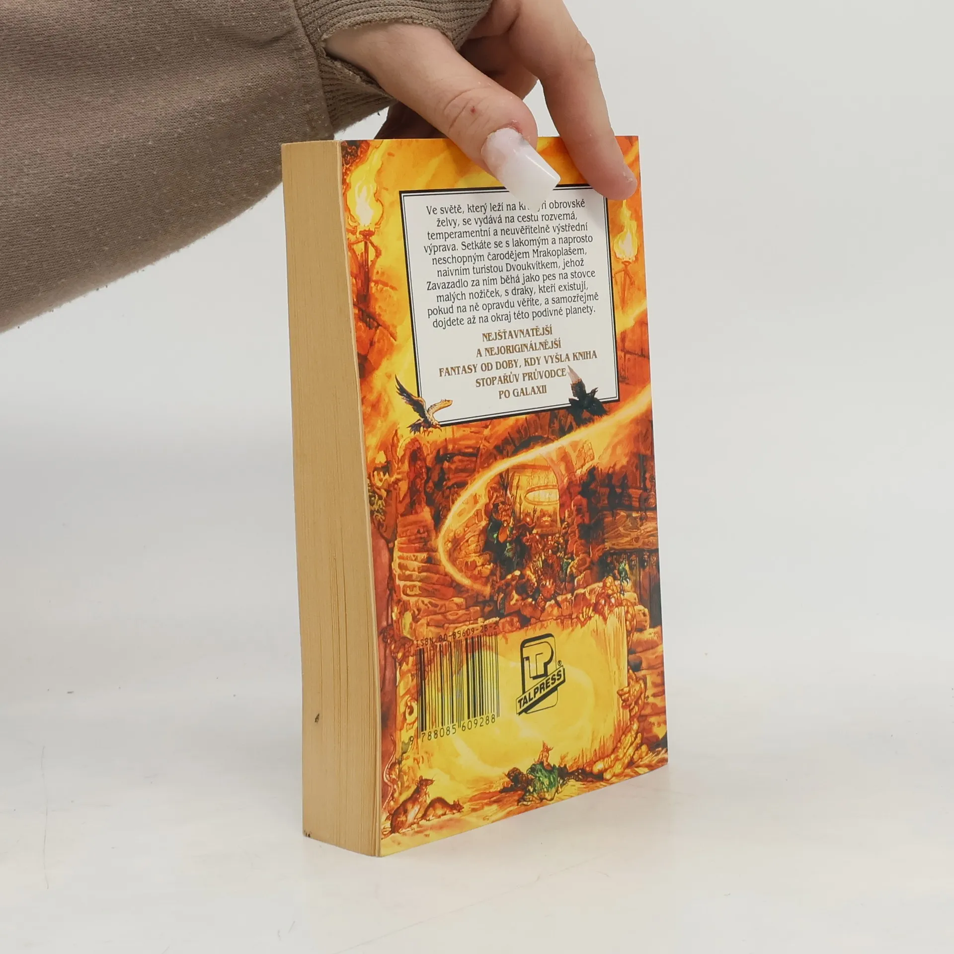 Ve světě, který leží na krunýři obrovské želvy, se vydává na cestu rozverná, temperamentní a neuvěřitelně výstřední výprava. Setkáte se s lakomým a naprosto neschopným čarodějem Mrakoplašem, naivním turistou Dvoukvítkem, jehož Zavazadlo za ním běhá jako pes na stovce malých nožiček, s draky, kteří existují pokud na ně opravdu věříte, a samozřejmě dojdete až na okraj této podivné planety.