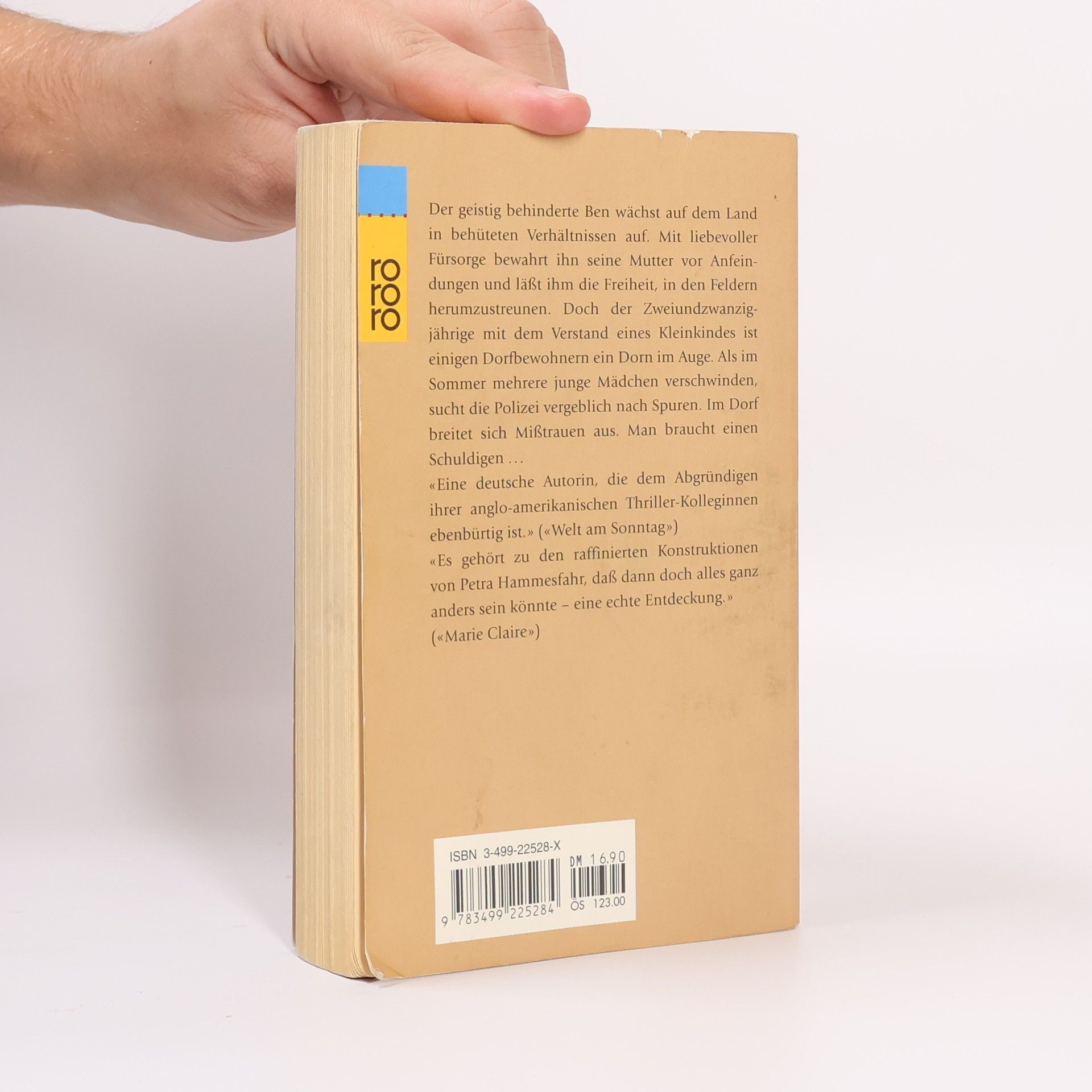 Der geistig behinderte Ben wächst auf dem Land in behüteten Verhältnissen auf. Mit liebevoller Fürsorge bewahrt ihn seine Mutter vor Anfeindungen und lässt ihm die Freiheit, in den Feldern herzumzustreunen. Doch der Zweiundzwanzigjährige mit dem Verstand eines Kleinkindes ist einigen Dorfbewohnern ein Dorn im Auge. Als im Sommer mehrere junge Mädchen verschwinden, sucht die Polizei vergeblich nach Spuren. Im Dorf breitet sich Mißtrauen aus. Man braucht einen Schuldigen ...«Eine deutsche Autorin, die dem Abgründigen ihrer anglo-amerikanischen Thriller-Kolleginnen ebenbürtig ist.» («Welt am Sonntag»)«Es gehört zu den raffinierten Konstruktionen von Petra Hammesfahr, daß dann doch alles ganz anders sein könnte – eine echte Entdeckung.» («Marie Claire»)