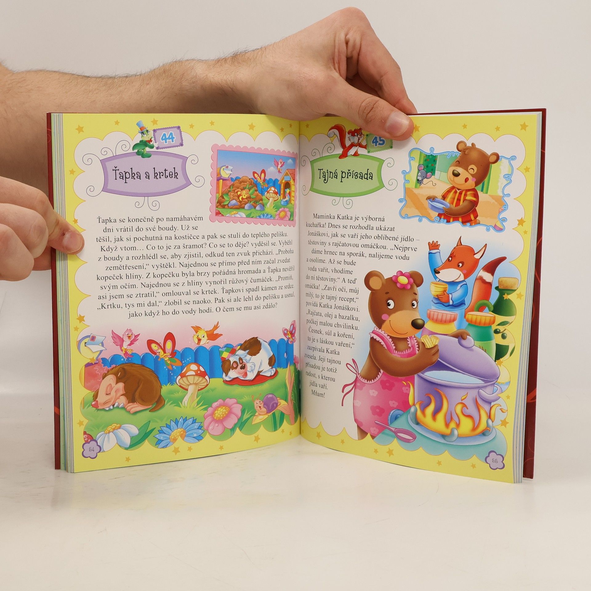 Knížky z edice Moje první čtení zahrnují klasické i méně známé příběhy a pohádky. Jednoduchý text je vhodný i pro začínající čtenáře, které zaujmou i roztomilé ilustrace.V této knížce čeká na malé čtenáře 82 krásných a originálních pohádek jako například O bojácné žabce, Létající myšák, Počítání oveček nebo Čistotné prasátko. Jsou vyprávěny jednoduchým a srozumitelným stylem, takže jim porozumí i ty nejmenší děti. Navíc je text psán písmeny, která jsou vhodná i pro začínající čtenáře. Co však na této knize zaujme na první pohled, jsou překrásné ilustrace.