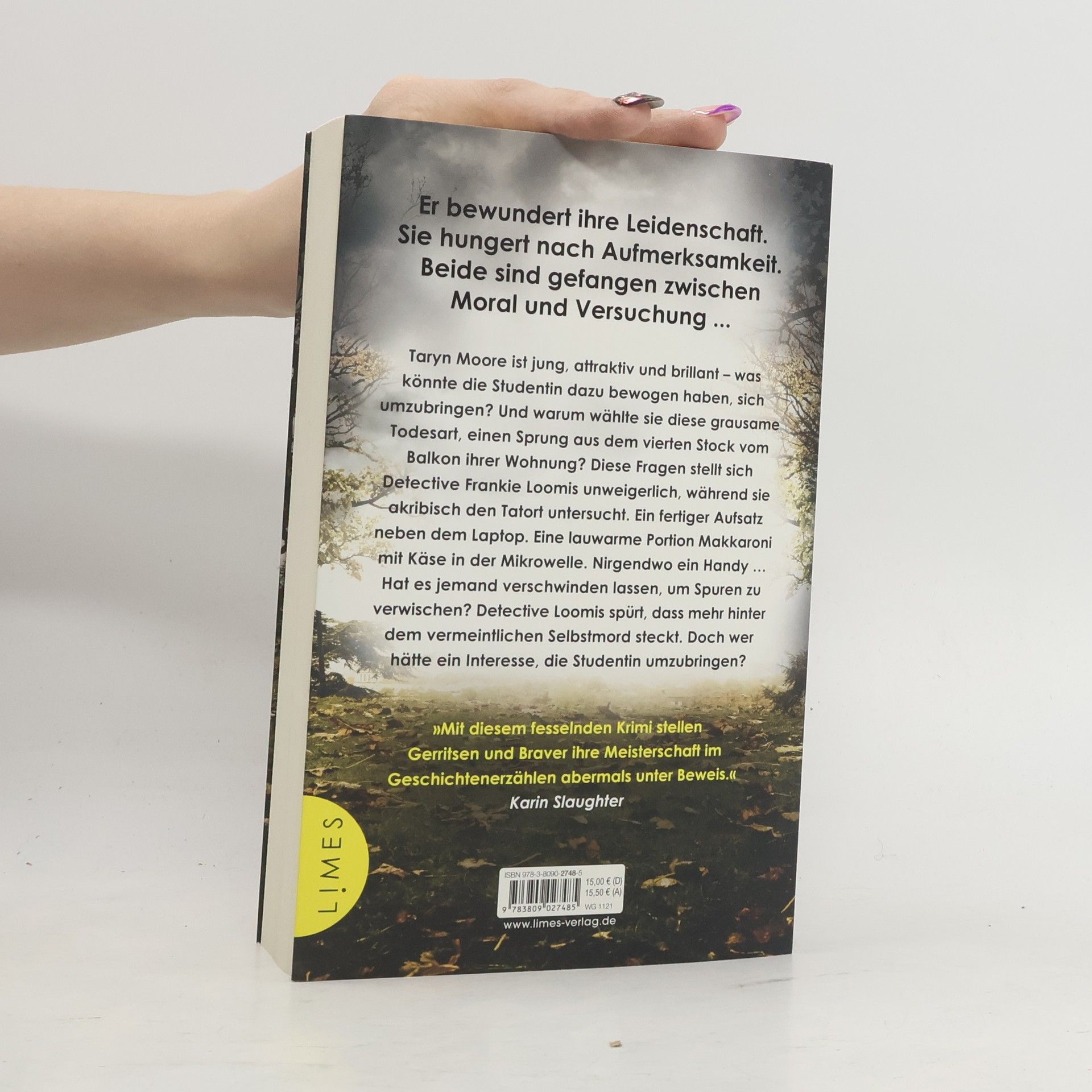 Der brandneue Pageturner aus der Feder der Bestsellerautoren Tess Gerritsen und Gary Braver – ein Spannungshochkaräter über Obsession, Versuchung und menschliche Schwächen. Taryn Moore ist jung, attraktiv und brillant – warum sollte sie sich umbringen? Detective Frankie Loomis spürt sofort, dass mehr hinter der Geschichte steckt, als sie den Tatort des vermeintlichen Selbstmords untersucht. Die Studentin hat sich aus dem Fenster ihres Apartments gestürzt. Doch ihr Handy ist spurlos verschwunden. Hat es jemand verschwinden lassen, um Spuren zu vertuschen?Für den Englischprofessor Jack Dorian war Taryn die vollendete Versuchung: intelligent, aufmerksam und zu hundert Prozent tabu. Doch Taryn hatte auch eine dunkle Seite, eine Neigung zu obsessiver Liebe – auch für Jack. Und mit ihrem Tod haben seine Probleme erst richtig begonnen.Loomis‘ Ermittlungen enthüllen pikante Geheimnisse. Schnell wird klar, dass Jack Dorian mehr weiß, als er offenbart. Doch hat er auch einen kaltblütigen Mord auf dem Gewissen? Weitere Stand-alone-Krimis von Tess Gerritsen: »Gute Nacht, Peggy Sue«»Kalte Herzen«»Roter Engel«»Trügerische Ruhe«»In der Schwebe«»Leichenraub«»Totenlied«»Das Schattenhaus«
