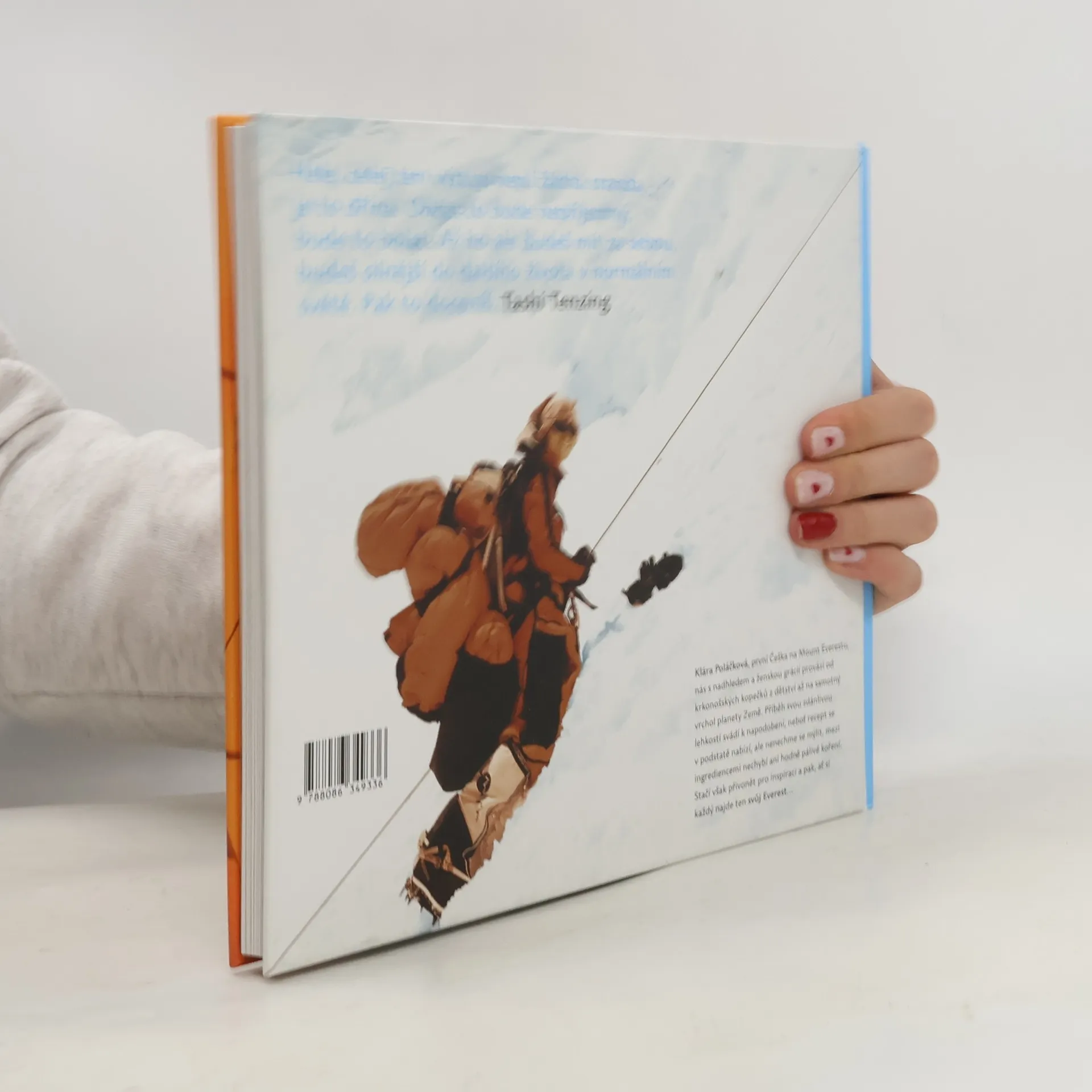 Klára Poláčková se šestnáct let po vůbec prvním úspěšném českém výstupu na Mt. Everest (8 848 m n.m.) v květnu 2007 stala první Češkou na himálajském vrcholu světa. V této vizuálně atraktivní knize máme možnost zblízka sledovat přípravy předcházející tomuto náročnému sportovnímu výkonu, zahrnující mimo jiné výstup na nejvyšší horu Ameriky, Aconcaguu (6 962 m n.m.), a také na himálajskou osmitisícovku Čho Oju (8 201 m n.m.), ležící čtyřicet kilometrů západně od nejvyšší hory Země. Zároveň tu poprvé vychází přepis autentického deníku, dovolující nahlédnout do nejintimnějších myšlenek a pocitů, spojených s nelehkým dvouměsíčním výstupem. CITÁT: „Hele, celej ten výstup není žádná sranda, je to dřina. Občas to bude nepříjemný, bude to bolet. Až to ale budeš mít za sebou, budeš silnější do dalšího života v normálním světě. Pak to doceníš.“ Tashi Tenzing