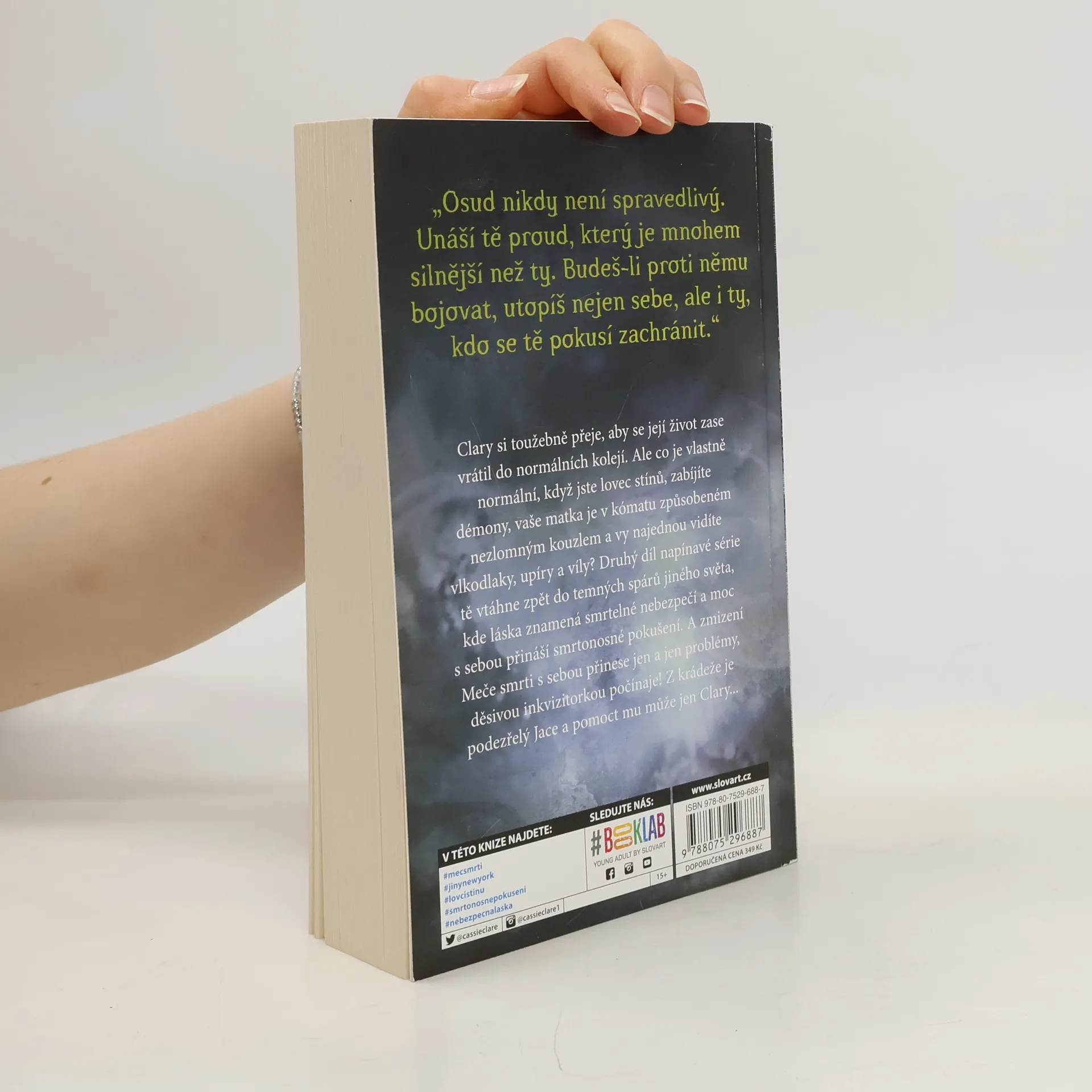 Clary Frayová si toužebně přeje, aby se její život zase vrátil do normálních kolejí. Ale co je vlastně normální, když jste lovec stínů, zabíjíte démony, vaše matka je v kómatu způsobeném zlověstným kouzlem a vy najednou všude vidíte vlkodlaky, upíry a pro obyčejné lidi nepředstavitelné příšery? V druhém díle se navracíme zpět do temných spárů „jiného světa“, kde láska vždy znamená nebezpečí a moc s sebou přináší smrtonosné pokušení.