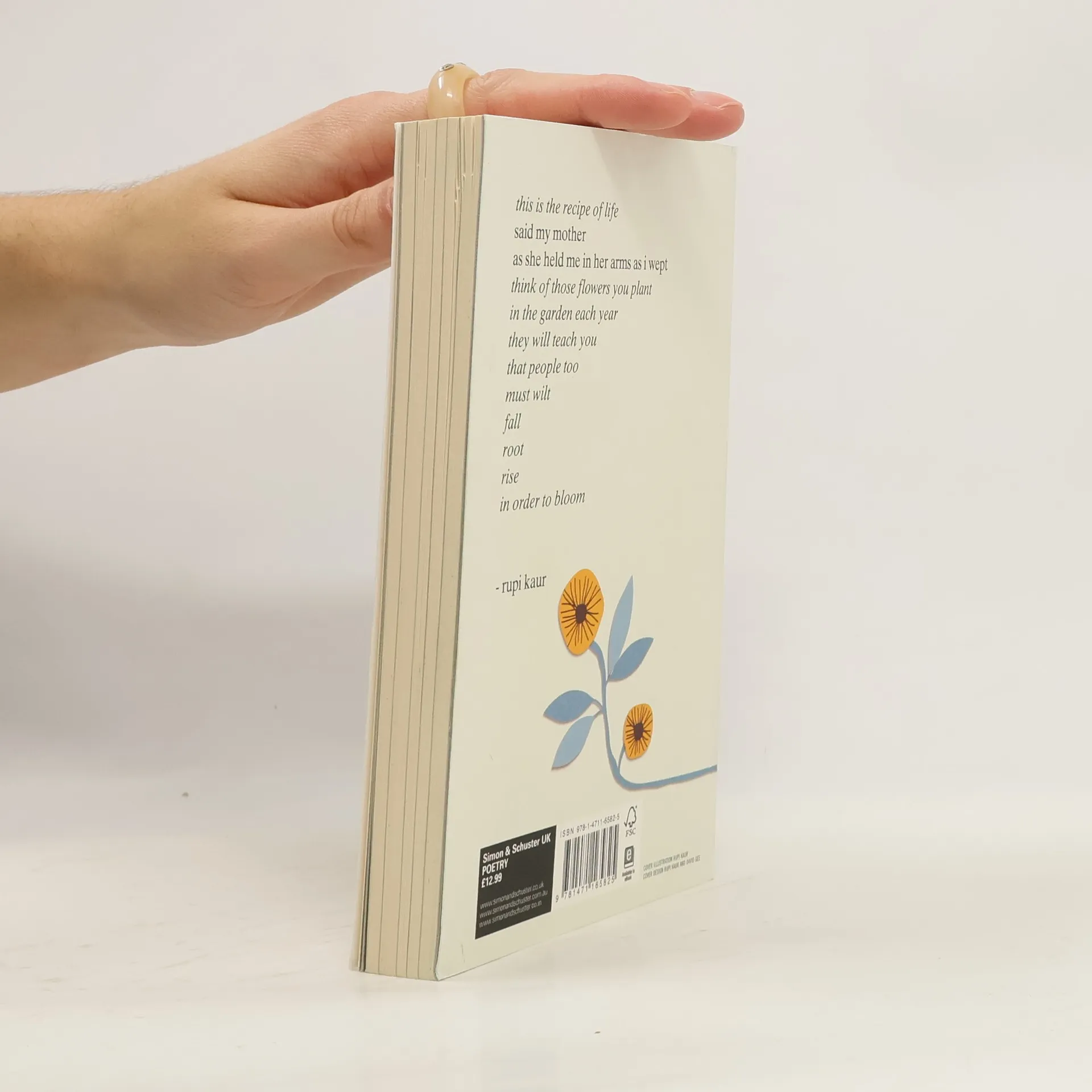 From Rupi Kaur, the top ten Sunday Times bestselling author of milk and honey, comes her long-awaited second collection of poetry. Illustrated by Kaur, the sun and her flowers is a journey of wilting, falling, rooting, rising and blooming. It is a celebration of love in all its forms.