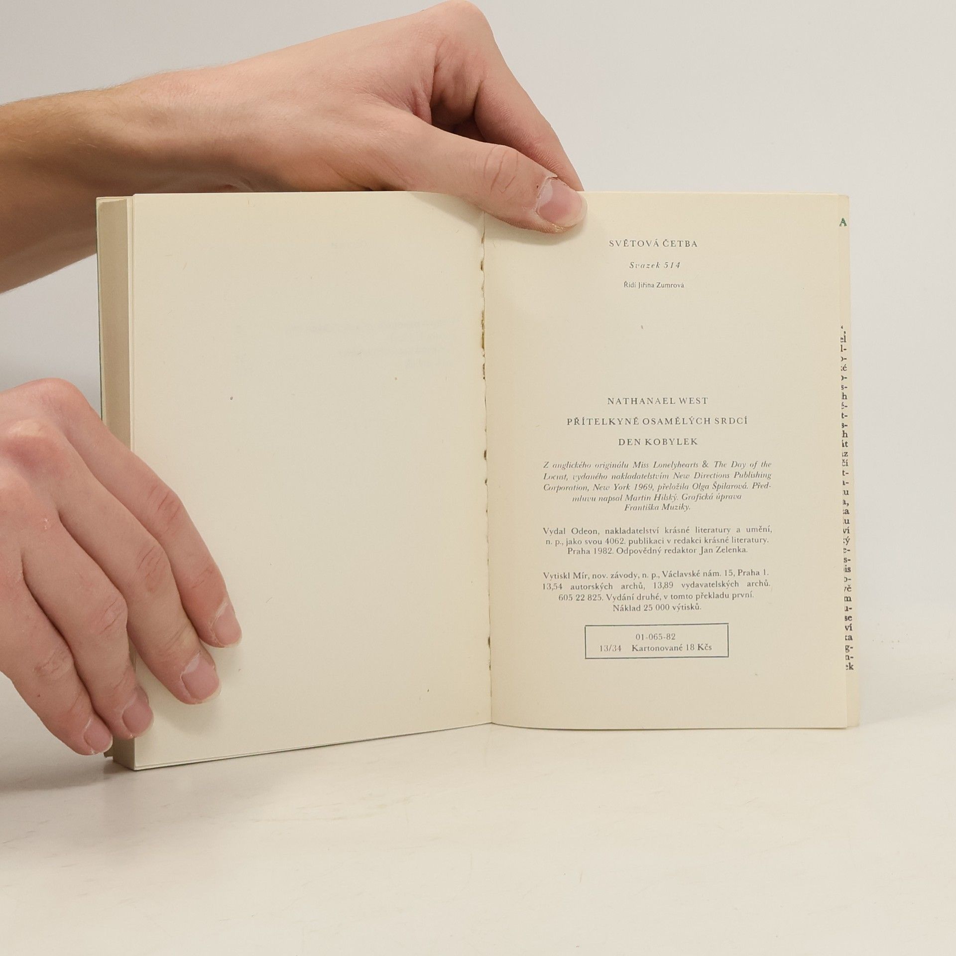 Dva romány (Přítelkyně osamělých srdcí, 1933; Den kobylek, 1939) amerického spisovatele, inspirované atmosférou třicátých let, odhalují mentalitu průměrného Američana i kořeny jeho bezvýchodné existence, založené na pochybných ideálech a naplněné honbou za majetkem. Předmluvu napsalMartin Hilský.