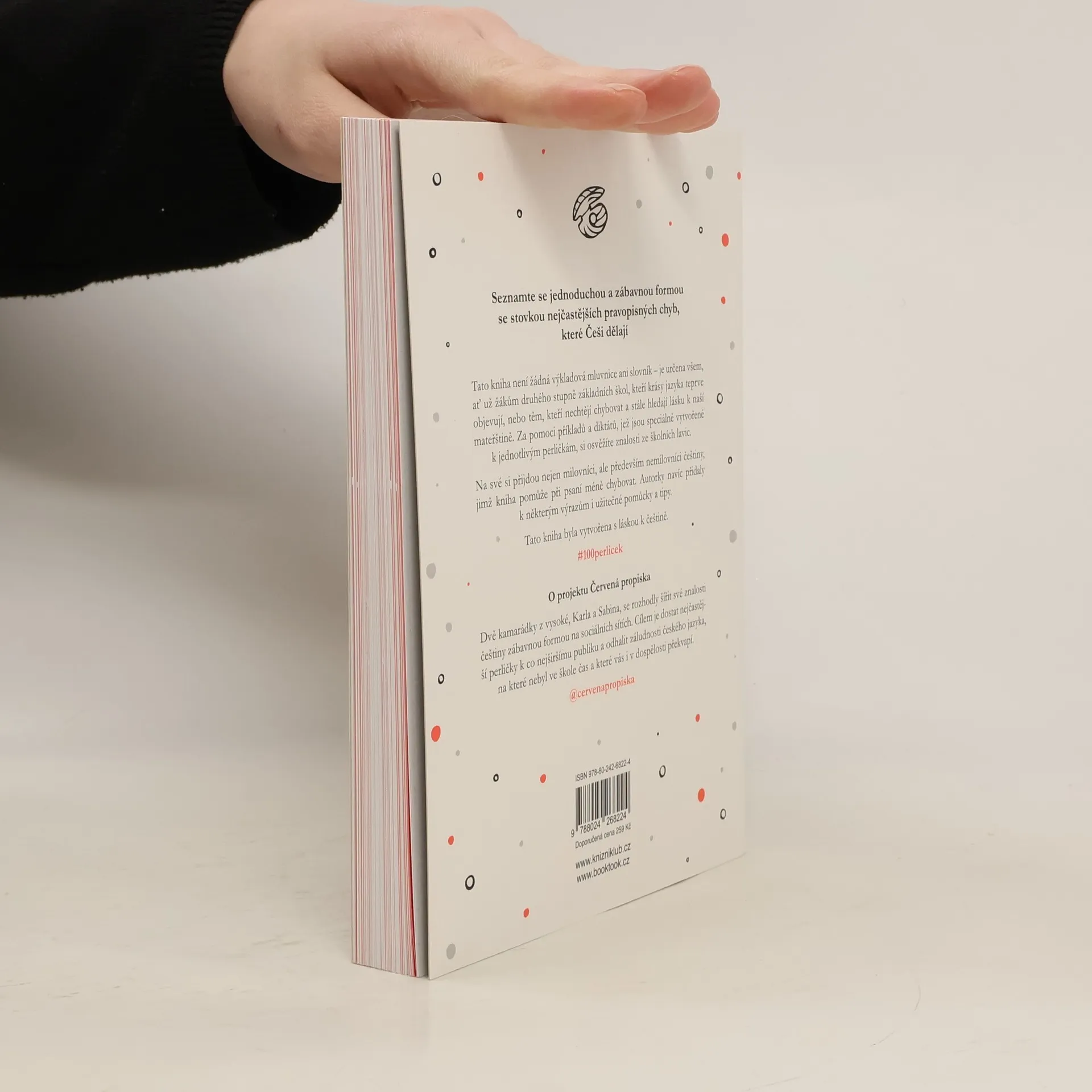 Seznamte se jednoduchou a zábavnou formou se stovkou nejčastějších pravopisných a gramatických chyb, které Češi dělají. Tato kniha není žádná výkladová mluvnice ani slovník – je určena všem, ať žákům druhého stupně základních škol, kteří krásy jazyka teprve objevují, nebo těm, kteří nechtějí chybovat a stále hledají lásku k naší mateřštině. Za pomoci příkladů a diktátů, které jsou speciálně vytvořené k jednotlivým perličkám, si osvěžíte znalosti ze školních lavic, které jste třeba i zapomněli. Na své si přijdou nejen milovníci, ale především nemilovníci češtiny, kterým kniha může pomoct v textech méně chybovat. Autorky navíc přidaly k některým výrazům i užitečné pomůcky a tipy. Tato kniha byla vytvořena s láskou k češtině. #100perlicek