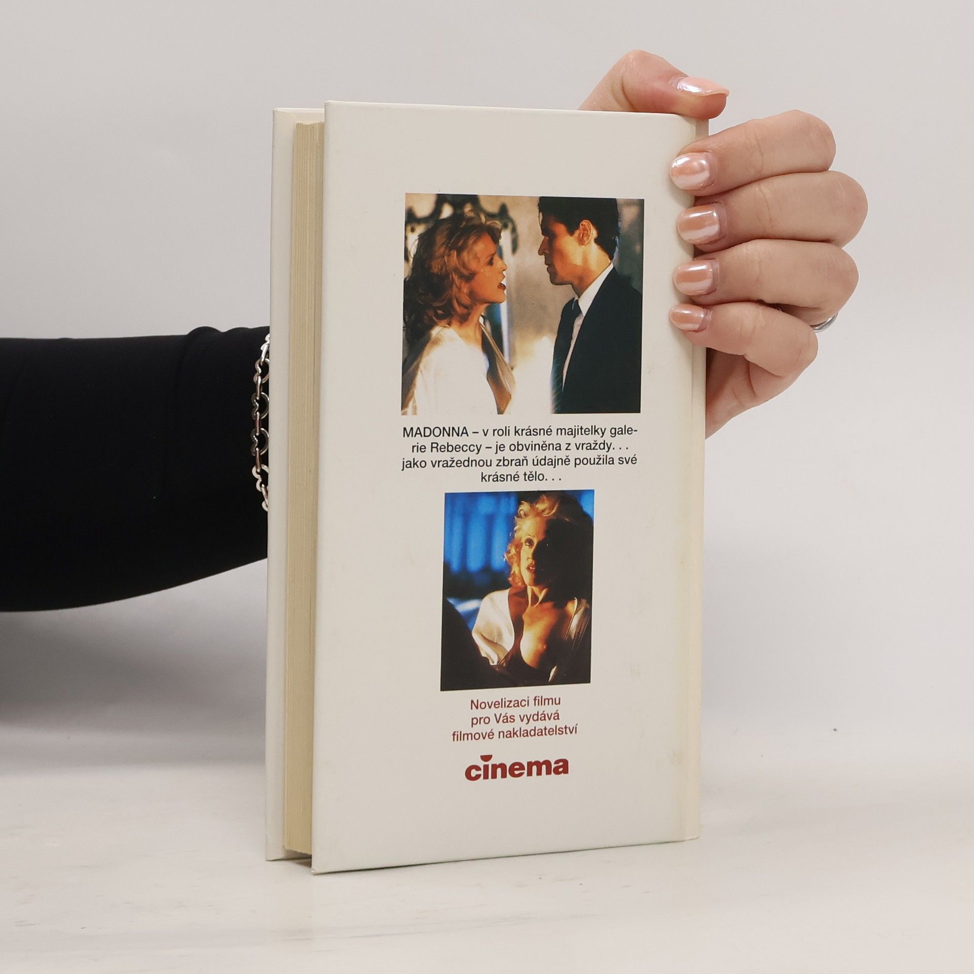 Novelizace filmu - knižní přepis filmového příběhu. Madona - v roli krasne majitelky galerie Rebeccy - je obviněna z vraždy ...jako vražednou zbraň údajně použila své tělo...