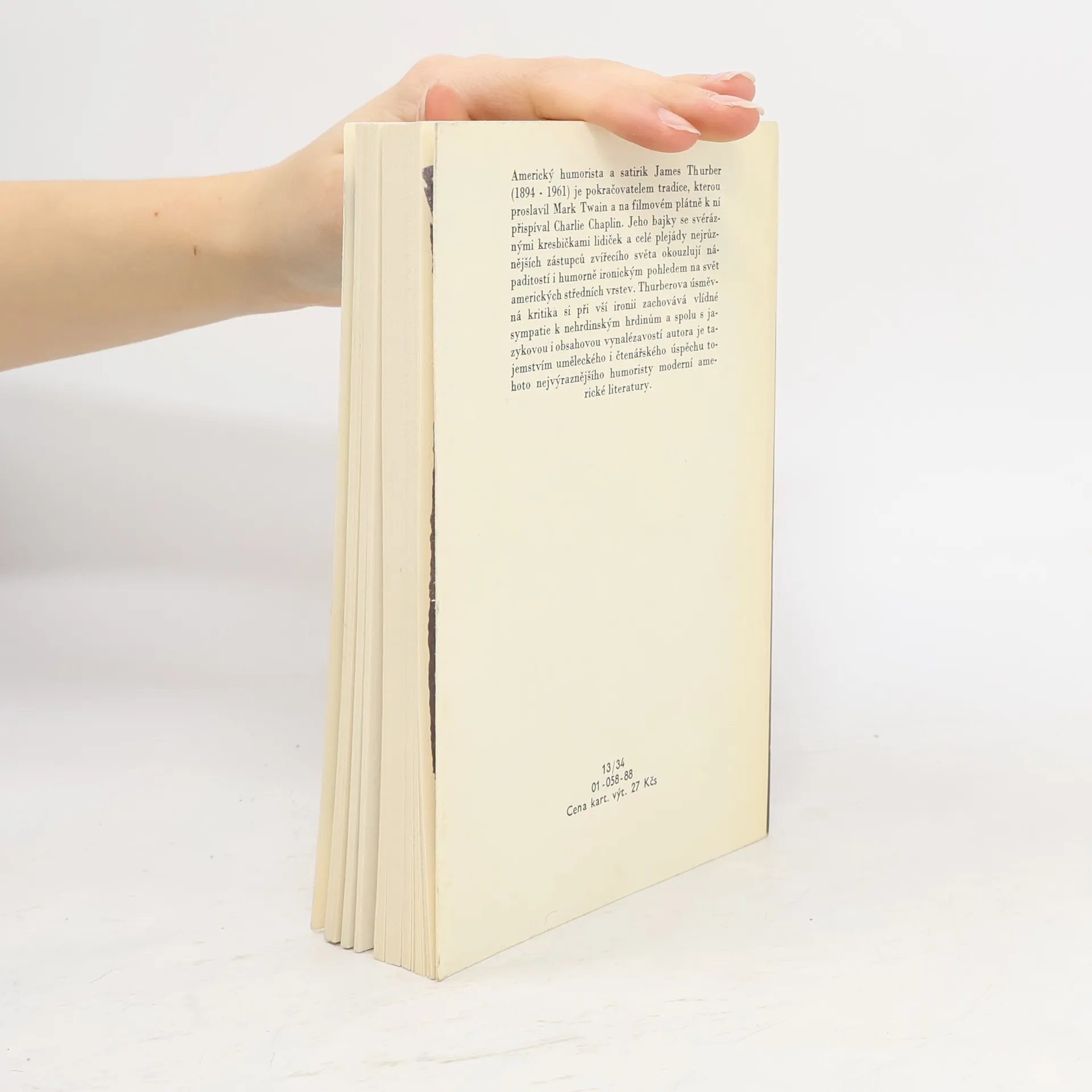 Americký humorista a satirik James Thurber (1894 — 1961) je pokračovatelem tradice, kterou proslavil Mark Twain a na filmovém plátně k ní přispíval Charlie Chaplin. Jeho bajky se svéráznými kresbičkami lidiček a celé plejády nejrůznějších zástupců zvířecího světa okouzlují nápaditostíi humorně ironickým pohledem na svět amerických středních vrstev. Thurberova úsměvná kritika si při vší ironii zachovává vlídné sympatie k nehrdinským hrdinům a spolu s jazykovou i obsahovou vynalézavostí autora je tajemstvím uměleckého i čtenářského úspěchu tohoto nejvýraznějšího humoristy moderní americké literatury.