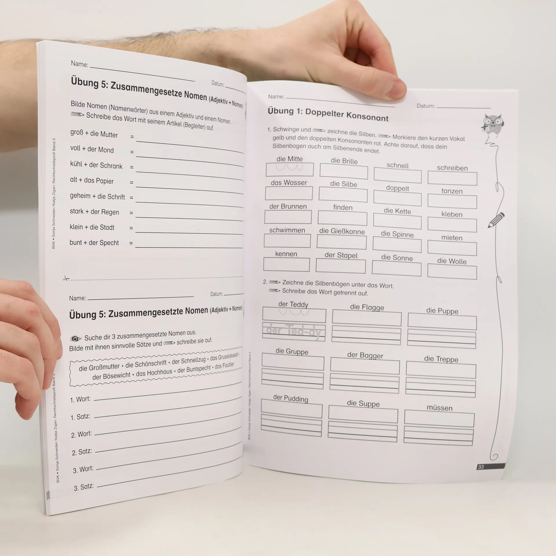 Eine Vielzahl praxiserprobter Kopiervorlagen zu verschiedenen Rechtschreibphänomenen finden Sie in der neuen Reihe „Rechtschreibprofi: Differenziertes Material zu Rechtschreibstrategien“. Die enthaltenen Arbeitsblätter sind alle zweifach differenziert. Dies sowie die wiederkehrenden Aufgabenformate machen die Reihe zu perfekten Materialien für die Inklusion sowie für Kinder mit Schwierigkeiten in der Rechtschreibung. Themen Band 3 (Orthografische Strategie): a/ä, au/äu, o/ö, Nomen werden großgeschrieben, zusammengesetzte Nomen, doppelter Konsonant, doppelter Vokal, ie, Verlängern der Endungen d/t, b/p, g/k, Dehnungs-h