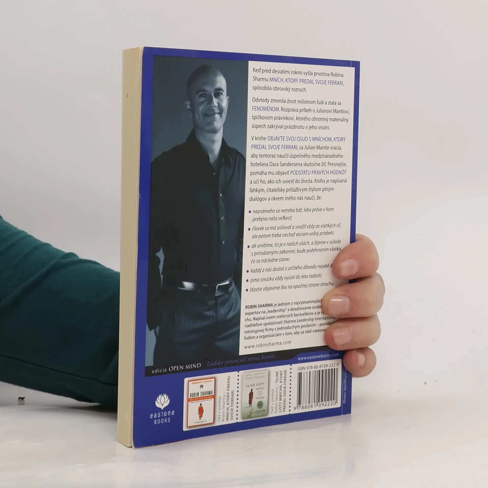 Keď pred desiatimi rokmi vyšla prvotina Robina Sharmu Mních, ktorý predal svoje Ferrari, spôsobila obrovský rozruch. Odvtedy zmenila život miliónom ľudí a stala sa fenoménom. Rozpráva príbeh o Julianovi Mantlovi, špičkovom právnikovi, ktorého ohromný materiálny úspech zakrýval prázdnotu v jeho vnútri. V knihe Objavte svoj osud s mníchom, ktorý predal svoje Ferrari, sa Julian Mantle vracia, aby tentoraz naučil úspešného medzinárodného hoteliera Dara Sandersena skutočne žiť. Presnejšie, Julian Darovi pomáha objaviť podstatu pravých hodnôt a učí ho, ako ich uviesť do života. Kniha je napísaná ľahkým, čitateľsky príťažlivým štýlom plným dialógov a aktuálnych postrehov. Kniha nás na konkrétnych príkladoch naučí, že: neznámeho sa netreba báť, lebo práve v ňom prebýva naša veľkosť; človek sa má usilovať a snažiť vždy zo všetkých síl, ale potom nechať veciam voľný priebeh a dať životu čas, aby urobil ostatné; ak zmeníme pud prežiť na odhodlanie slúžiť pravde a životu, náš život bude vždy úspešný... a mnoho ďalších vecí.