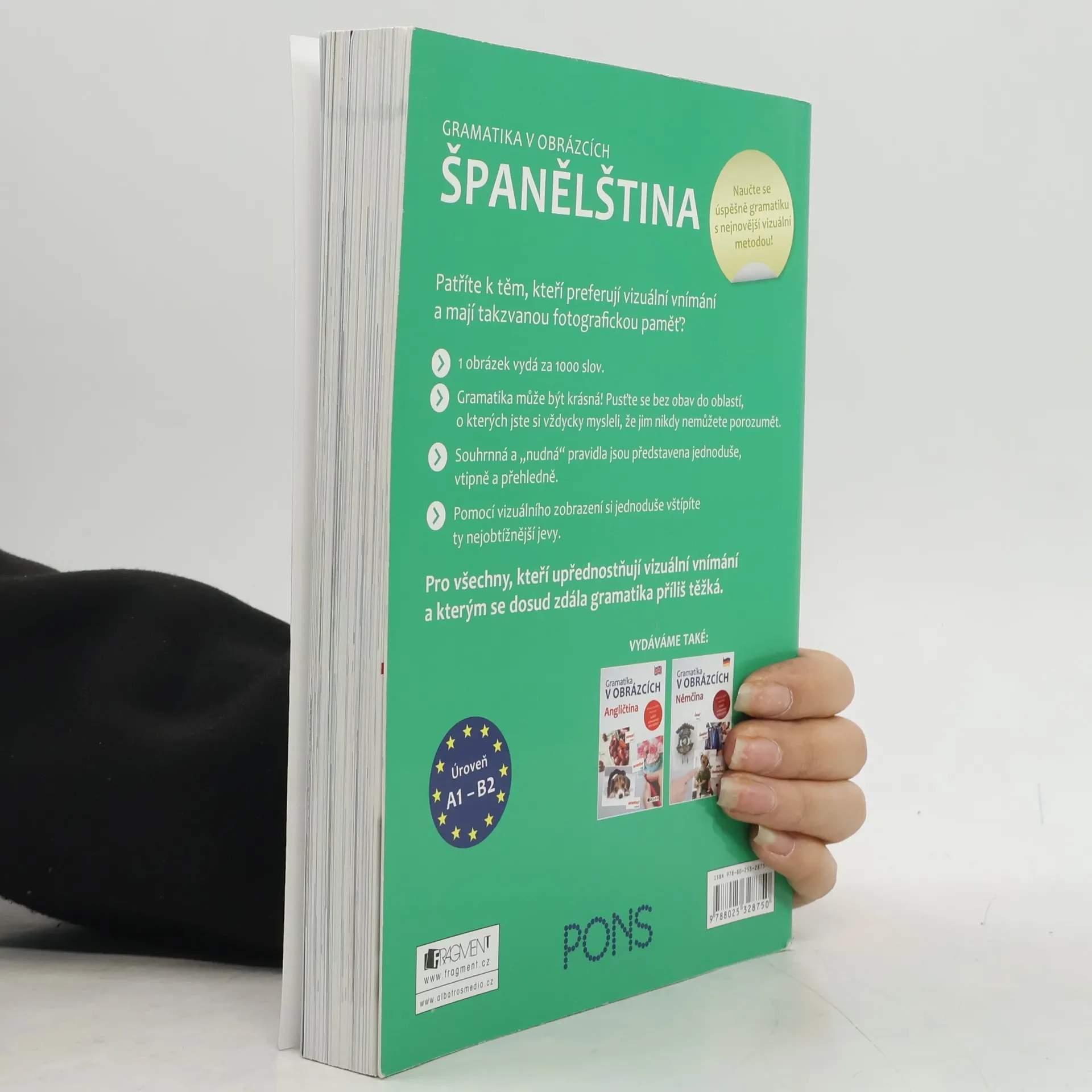Patříte k těm, kteří preferují vizuální vnímání a mají takzvanou fotografickou paměť? Pro vás a všechny ostatní, které už nebaví staré nezáživné metody a chtějí se učit moderně a efektivně, je tato unikátní učebnice gramatiky. Výklad gramatických jevů je postaven na vtipně a rafinovaně vybraných příkladech, které doplňuje velké množství obrázků. Vše je podáno jednoduše, přehledně a srozumitelně. Snadno tak pochopíte i ty nejzáludnější gramatické jevy. Konečně učebnice, díky níž gramatiku pochopíte!