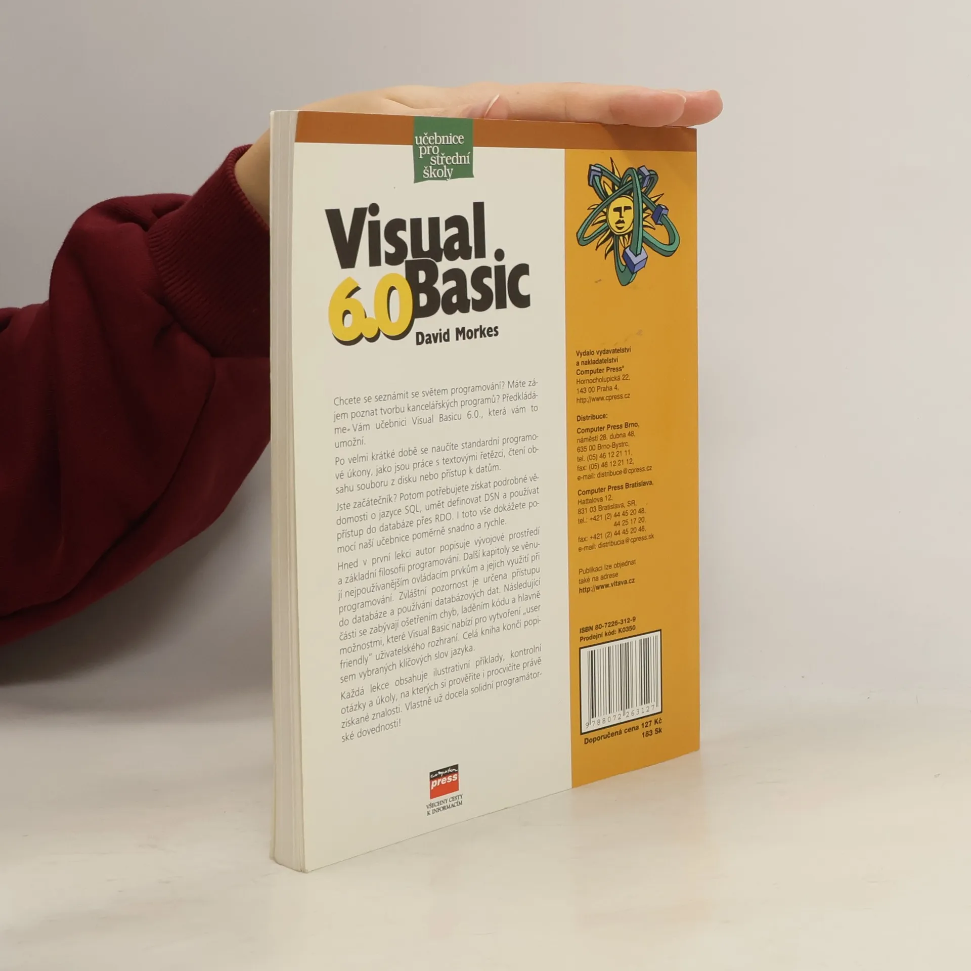Chcete se seznámit se světem programování? Máte zájem poznat tvorbu kancelářských programů? Předkládáme vám učebnici Visual Basicu 6.0, která vám toto vše umožní. Po velmi krátké době se naučíte standardní programové úkony jako jsou práce s textovými řetězci, čtení obsahu souboru z disku nebo přístup k datům. Jste začátečník? Potom potřebujete získat podrobné vědomosti o jazyce SQL, umět definovat DSN a používat přístup do databáze přes RDO. Toto vše dokážete pomocí naší učebnice poměrně snadno a rychle. Pojďme se společně podívat na strukturu knihy. Hned v první lekci autor popisuje vývojové prostředí a základní filozofii programování. Další kapitoly se věnují nejpoužívanějším ovládacím prvkům a jejich využití při programování. Zvláštní pozornost je věnována přístupu do databáze a používání databázových dat. Následující části se zabývají ošetřením chyb, laděním kódu a hlavně možnostmi, které Visual Basic nabízí pro vytvoření user friendly uživatelského rozhraní. Celá kniha končí popisem vybraných klíčových slov jazyka. Každá lekce obsahuje ilustrativní příklady, kontrolní otázky a úkoly, na kterých si prověříte i procvičíte právě získané znalosti. Vlastně už dovednosti.