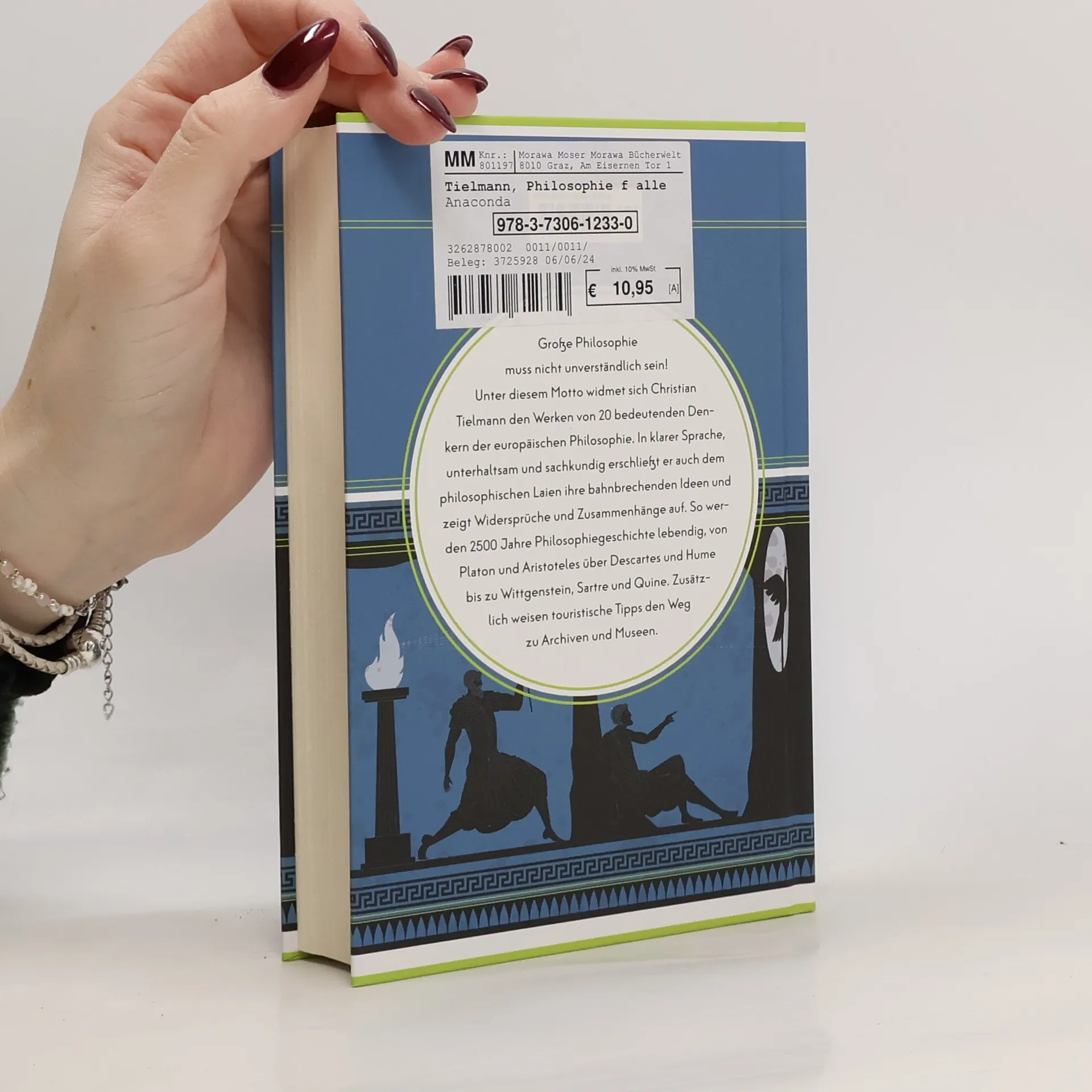 Große Philosophie muss nicht unverständlich sein! Unter diesem Motto widmet sich Christian Tielmann den Werken von 20 bedeutenden Denkern der europäischen Philosophie. In klarer Sprache, unterhaltsam und sachkundig erschließt er auch dem philosophischen Laien ihre bahnbrechenden Ideen und zeigt Widersprüche und Zusammenhänge auf. So werden 2500 Jahre Philosophiegeschichte lebendig, von Platon und Aristoteles über Descartes und Hume bis zu Wittgenstein, Sartre und Quine. Zusätzlich weisen touristische Tipps den Weg zu Archiven und Museen. Für den kleinen Bildungshunger zwischendurch Der ganze Kosmos der abendländischen Philosophie gut verdaulich zusammengefasst Mit touristischen Tipps zu Sehenswürdigkeiten und Museen